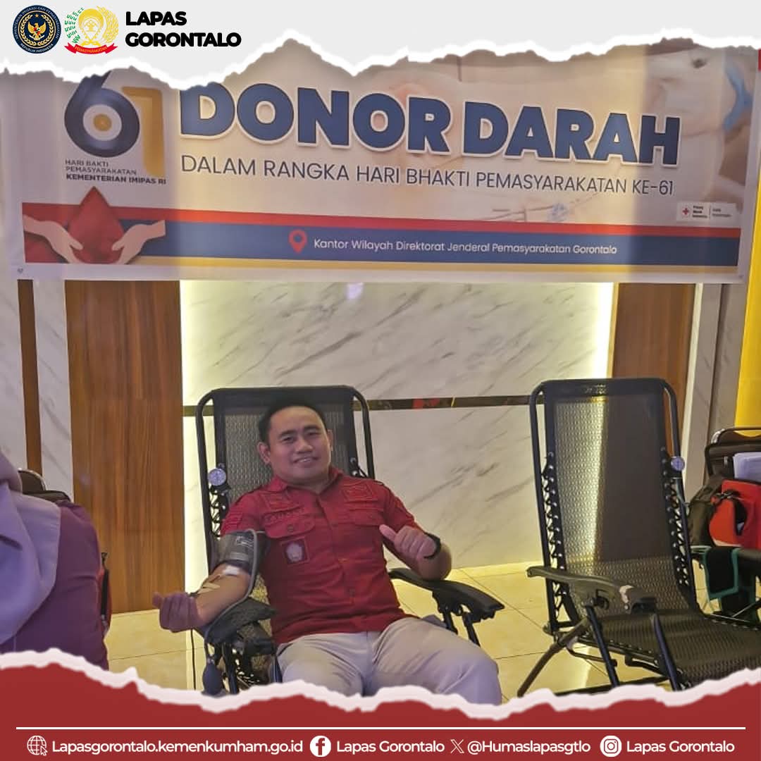 Gorontalo, — Dalam rangka memperingati Hari Bhakti Pemasyarakatan (HBP) ke-61 tahun 2025, Lembaga Pemasyarakatan (Lapas) Kelas IIA Gorontalo turut ambil bagian dalam kegiatan donor darah yang diselenggarakan secara serentak oleh seluruh Unit Pelaksana Teknis (UPT) se-Kanwil Direktorat Jenderal Pemasyarakatan Gorontalo, Kamis (17/4).