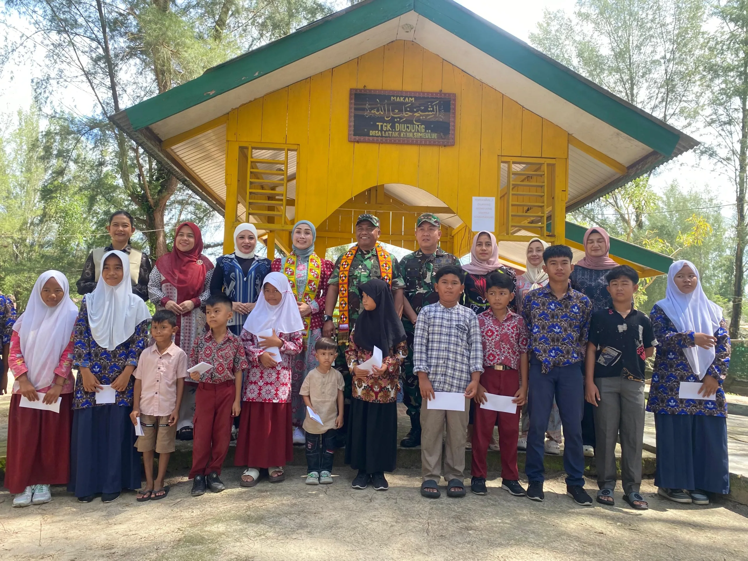 Simeulue – Komandan Korem 012/Teuku Umar Kolonel Inf Windarto S.Sos., M.M dalam kunjungan kerjanya memberi santunan kepada anak yatim sekaligus kunjungan ke makam Teungku Diujung didampingi oleh Ketua Persit KCK Koorcab Rem 012 PD IM Ny.Erma Windarto, Dandim 0115/Sml Letkol Arm Qomaruz Zaman, S.T., M.I.P., M.H.I, Ketua Persit KCK Cab XXXII Dim 0115 Ny.Ratih Qomaruz Zaman dan Unsur Muspika Simcut di Desa Latak Ayah, Kecamatan Simeulue Cut, Kabupaten Simeulue, Rabu (08/04/2026).