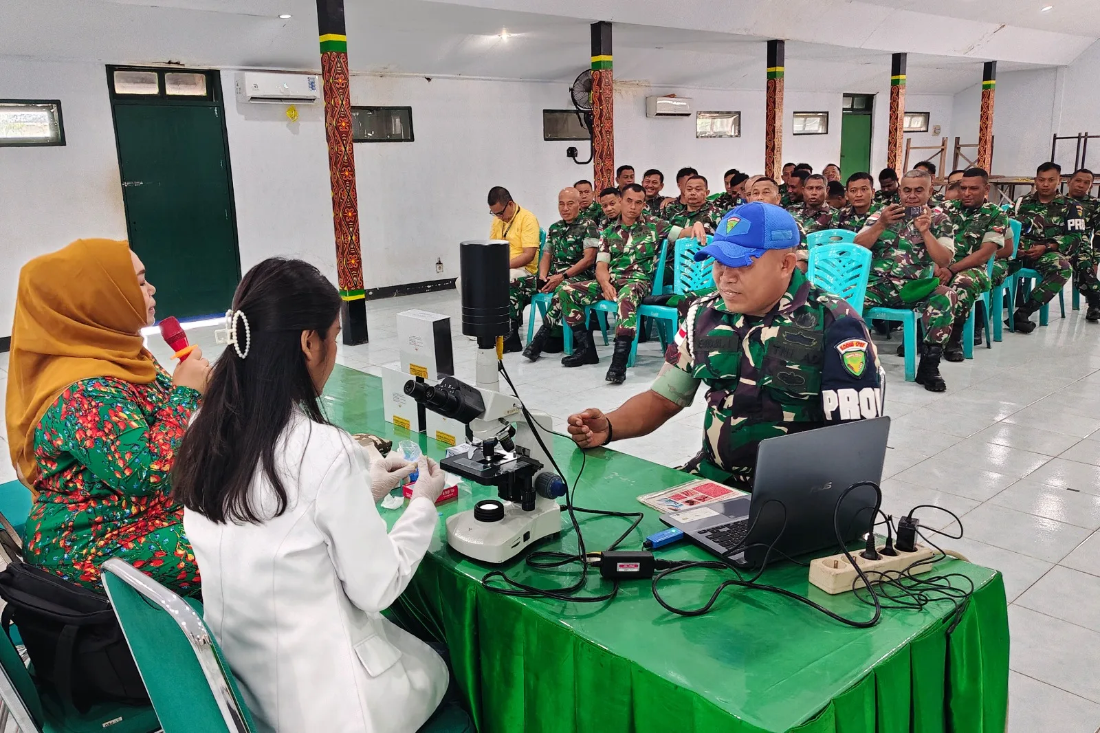 ANGGOTA KODIM 1707/MERAUKE IKUTI SOSIALISASI KESEHATAN DAN CEK DARAH GRATIS