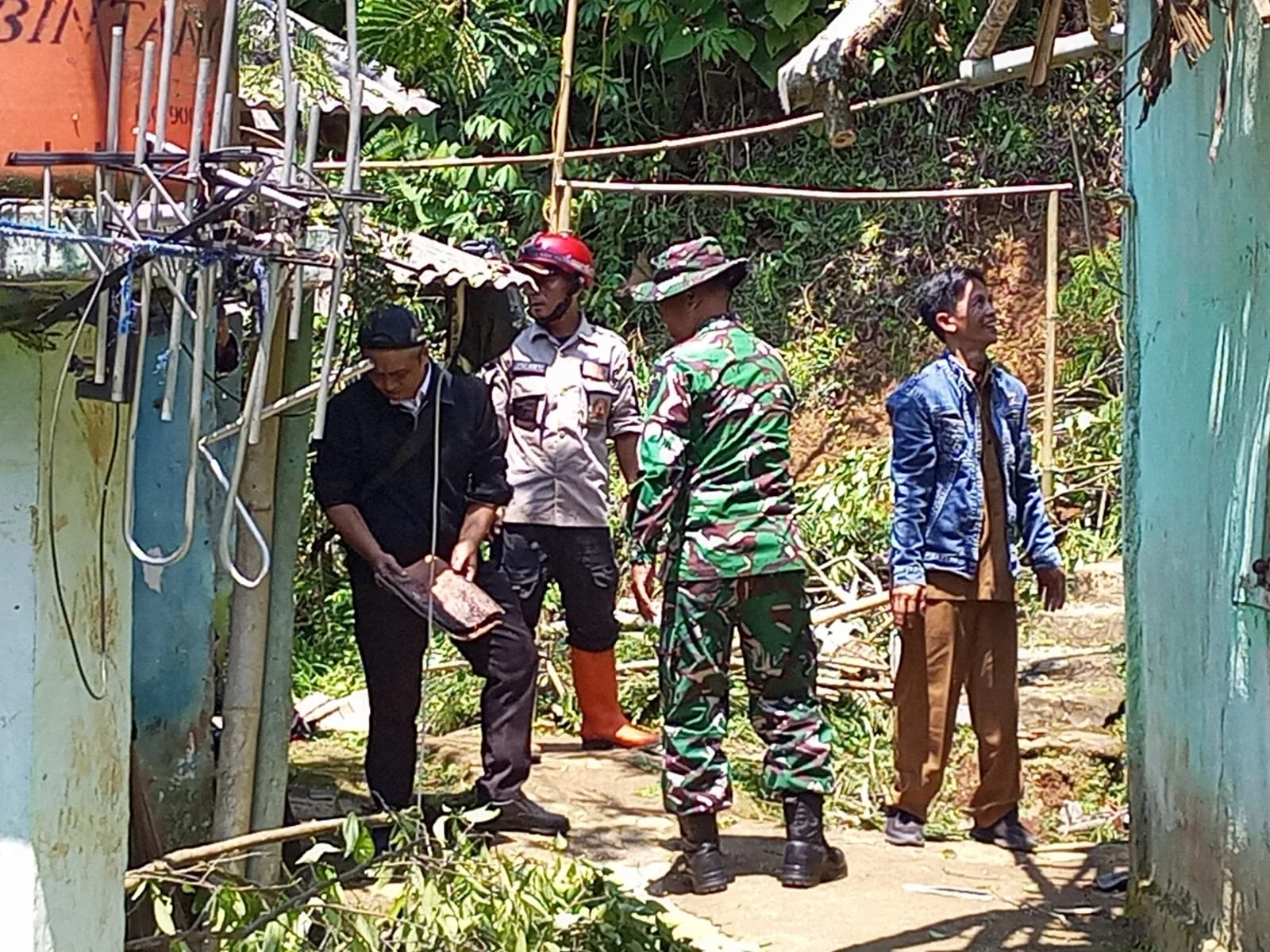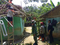 Bojonggenteng-Anggota Koramil 0607-12/Parungkuda melaksanakan kegiatan kerja bakti pasca bencana alam angin puting beliung di Kampung Mundu, Desa Bojonggaling, Kecamatan Bojonggenteng, Kabupaten Sukabumi.