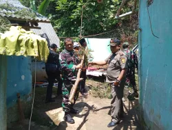Anggota Koramil 0607-12/Parungkuda Gelar Kerja Bakti Pasca Bencana Alam di Desa Bojonggaling