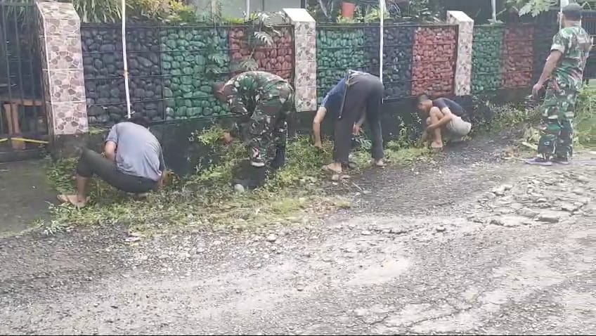 Anggota Koramil 1419-01/Maiwa Gelar Karya Bakti Pembersihan Selokan
