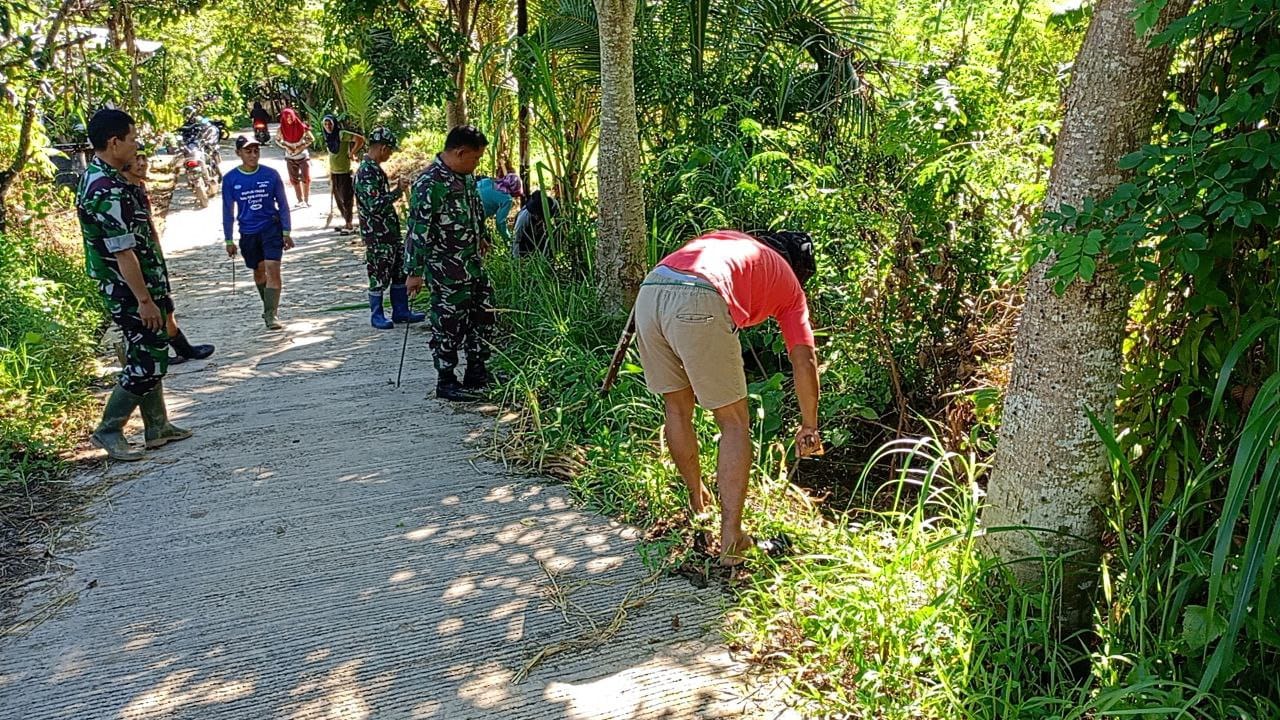 Tampak anggota Koramil bersama masyarakat bersemangat membersihkan sampah dan rumput-rumput liar di selokan, untuk kemudian dibuang ke tempat sampah yang tersedia.