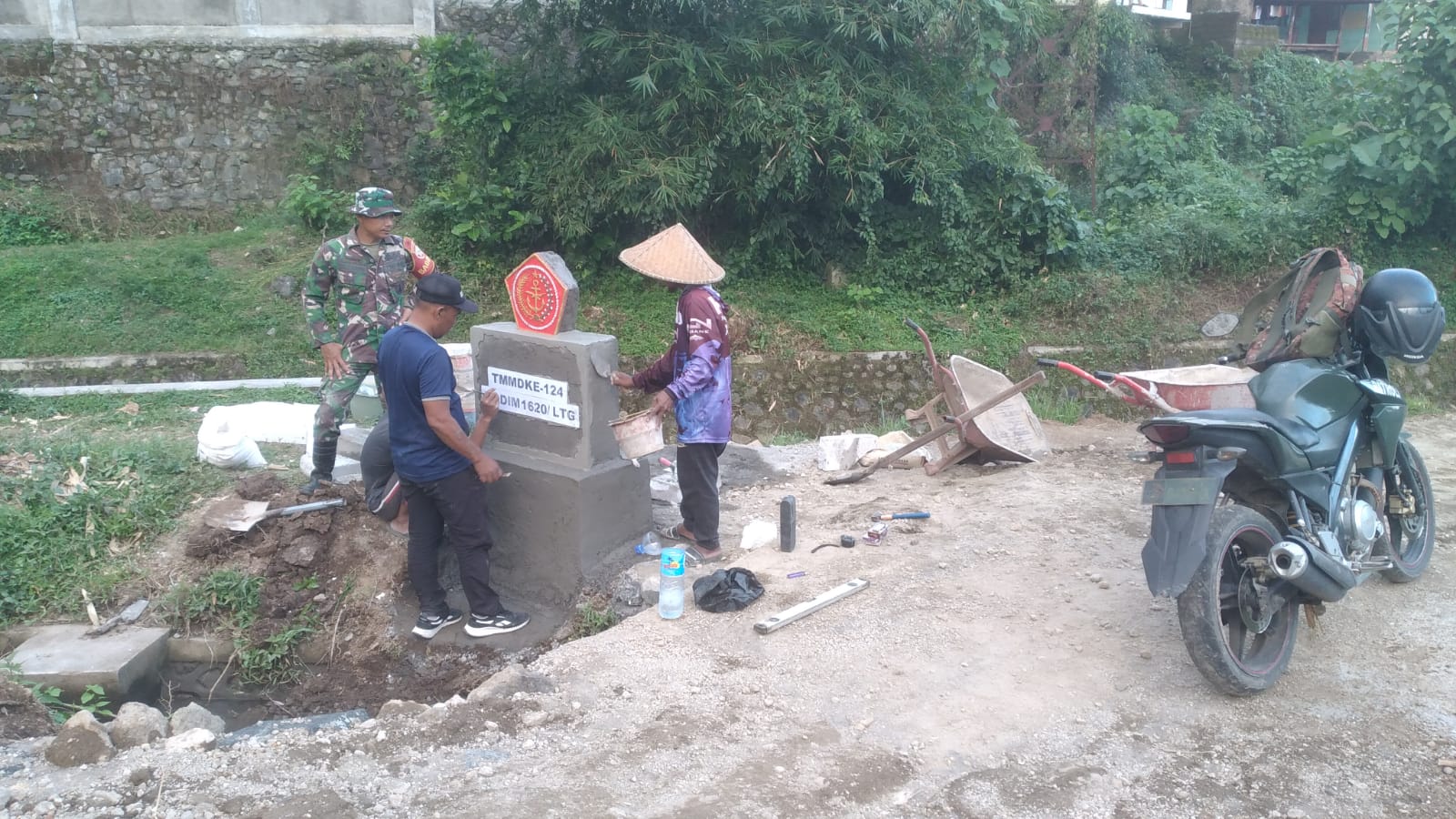 Anggota Satgas Bangun Tugu TMMD Ke-124 di Desa Selebung