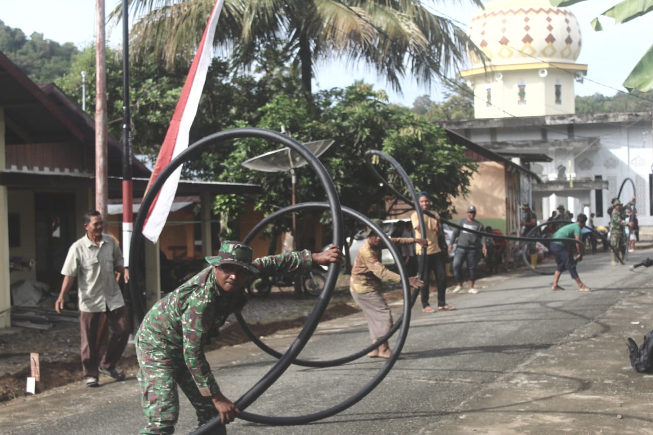 Sejak pagi hari, warga dengan sukarela bergotong royong bersama personel Satuan Tugas (Satgas) TMMD melakukan penggalian tanah untuk pemasangan pipa air bersih yang akan mengalirkan kebutuhan vital ke permukiman warga. Kegiatan ini merupakan bentuk sinergi antara TNI dan masyarakat dalam upaya meningkatkan kualitas hidup di daerah pedesaan.
