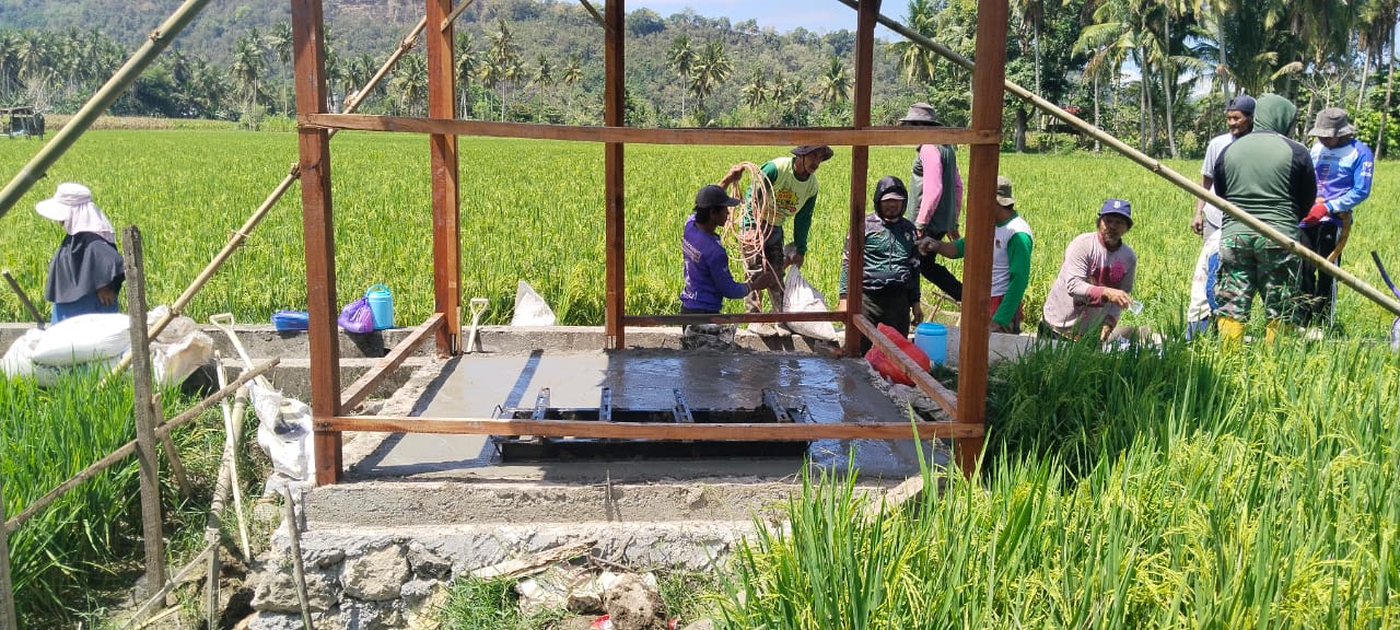 Kegiatan kerja bakti yang di lakukan babinsa dan warga poktan ini untuk membangun pondasi dudukan mesin pompa air agar mesin tidak pindah-pindah tempat dan kokoh, sehingga bangunannya bisa di pakai dalam jangka waktu lama.