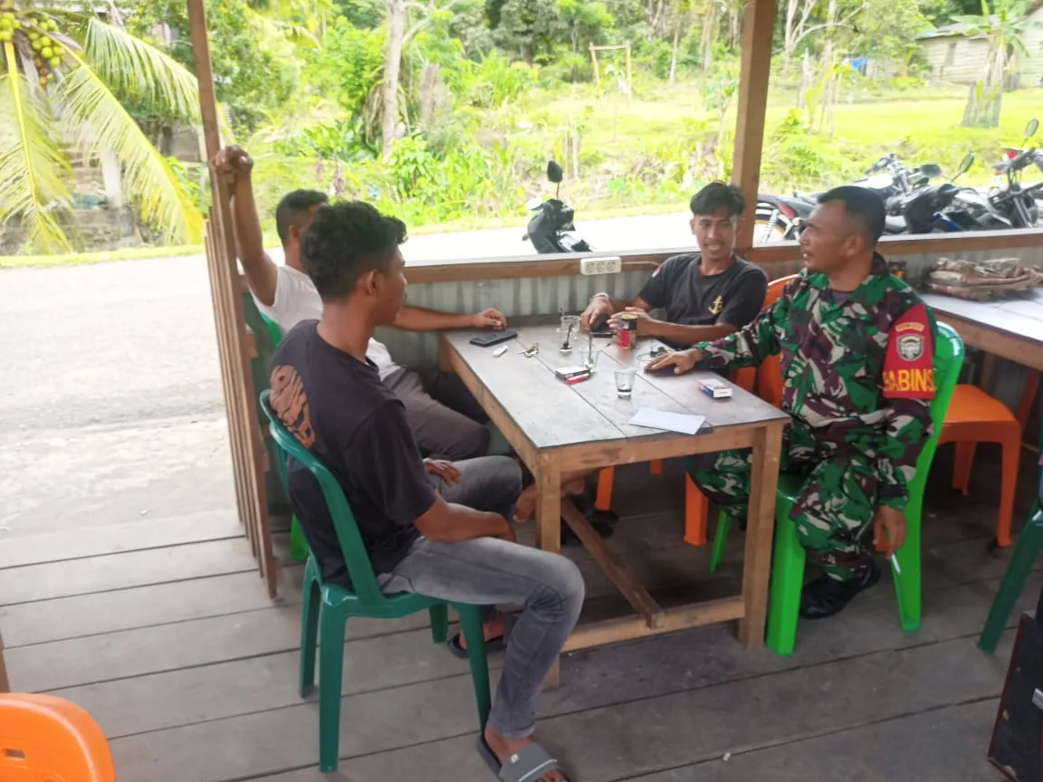 Simeulue – Serda Fitriadi Babinsa Koramil 03, Teupah Selatan, Kodim 0115/Simeulue, Korem 012/Teuku Umar. Laksanakan kegiatan Komsos Bersama warga Desa Labuan Bhakti, Kecamatan Teupah Selatan, Kabupaten Simeulue. Rabu (26/11/2025).
