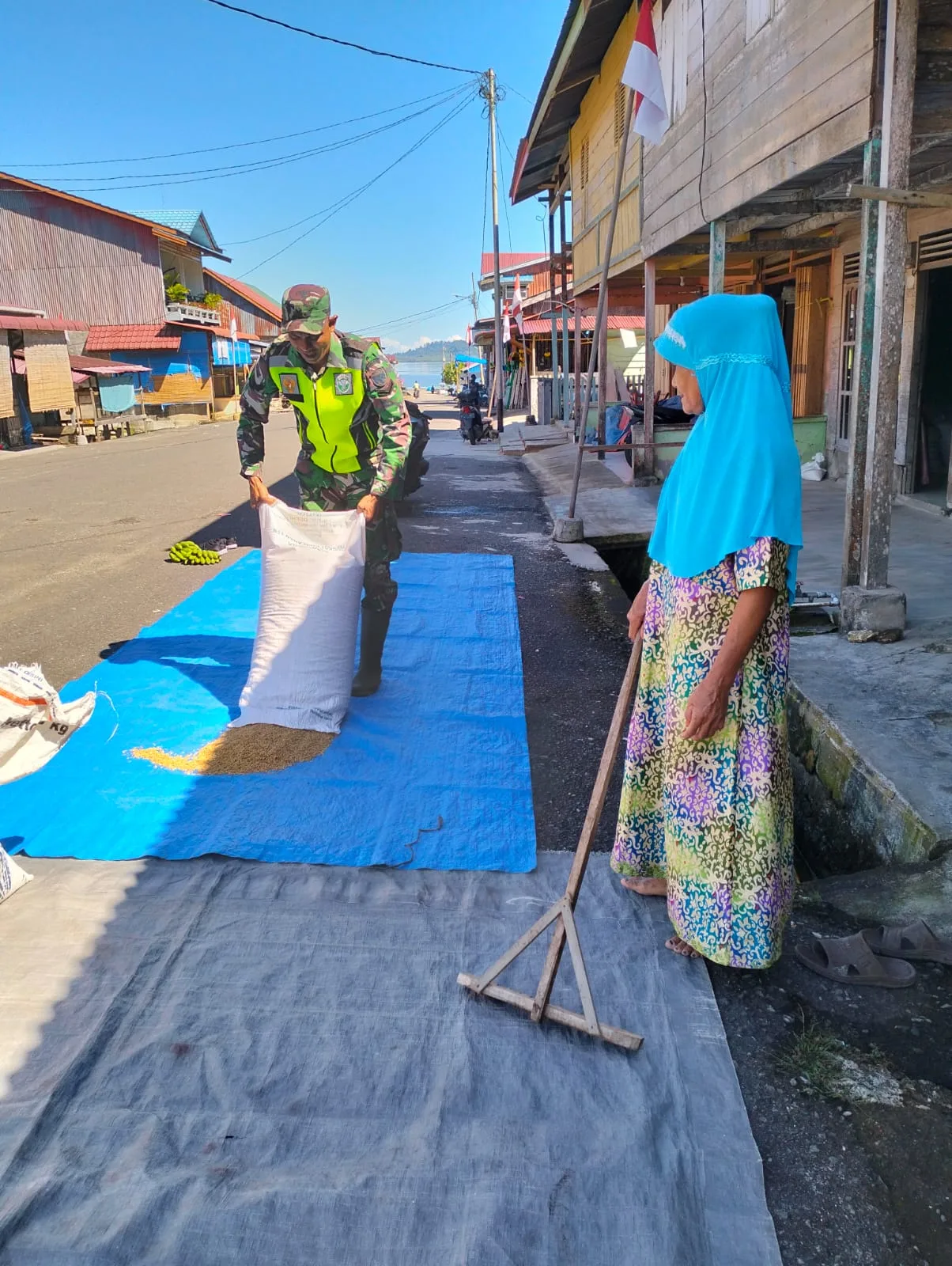 Serda Rahmat Firdaus Babinsa Koramil 05/Simeulue Barat, Kodim 0115/Simeulue, Korem 012/Teuku Umar. Melaksanakan komsos membantu warga menjemur padi hasil panen dari sawah mereka sendiri, Kegiatan ini biasanya dilakukan sebelum di bawa ke tempat penggilingan untuk di jadikan beras di Desa Layabaung, Kecamatan Simeulue Barat, Kabupaten Simeulue. Selasa (03/02/2026).