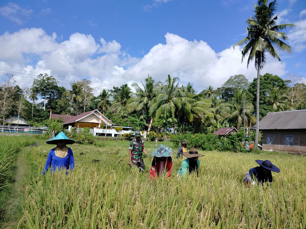 Babinsa Biringere Dampingi Panen Padi Kelompok Tani Taipa I