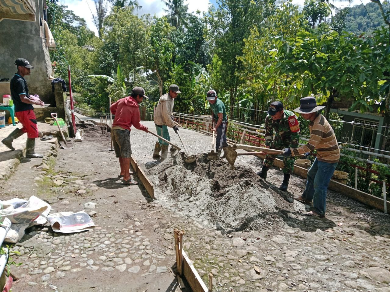 Jalan tani yang menjadi sasaran pengecoran sepanjang 200 meter ini merupakan akses penting bagi para petani dalam mengangkut hasil pertanian mereka. Pembangunan ini menjadi bukti nyata kepedulian TNI, khususnya Babinsa, terhadap kemajuan desa dan kesejahteraan masyarakat.