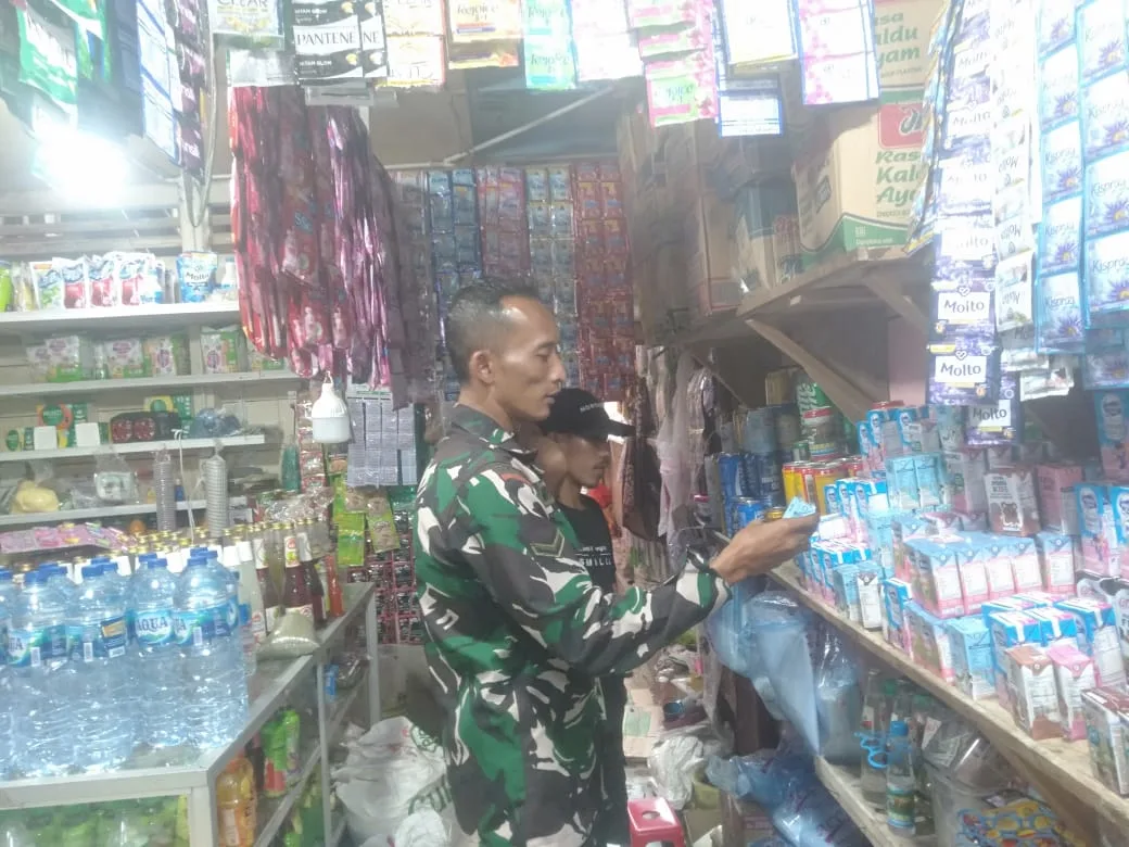 Babinsa Cek Harga Kebutuhan Pokok Didesa Binaan