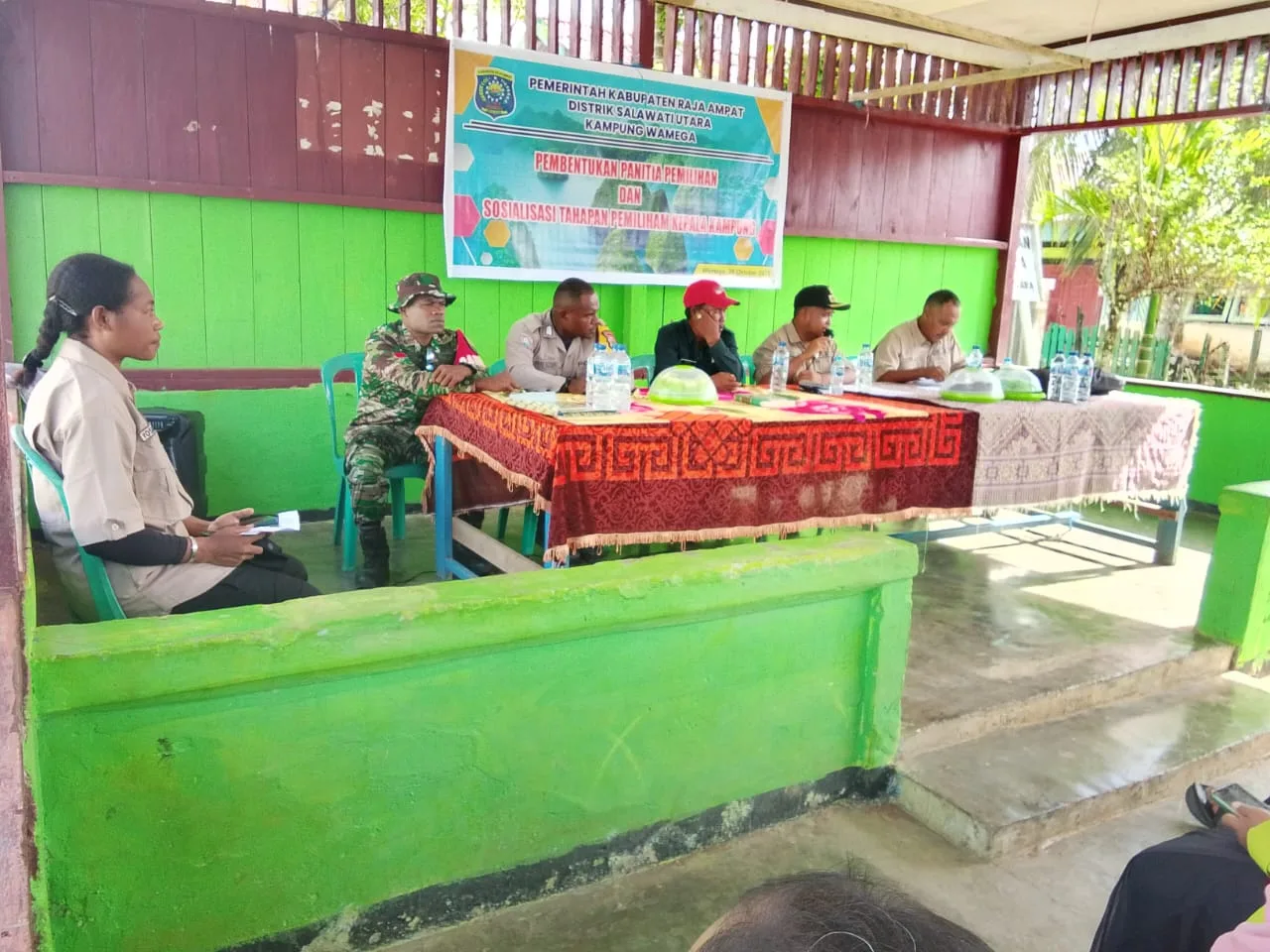 Raja Ampat,PBD-Babinsa Koramil 03/Samate Kodim 1805/Raja Ampat Praka Apner lapon menghadiri rapat pembentukan Panitia Pemilihan Kepala Desa, di Kantor desa Di kampung Samate Distrik Salawati Tengah Kabupaten Raja Ampat. Senin (27/10/2025).