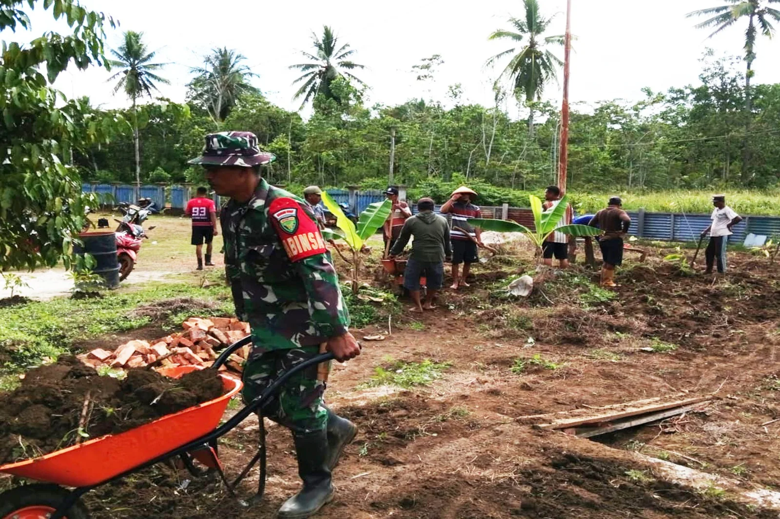 Kegiatan tersebut merupakan lanjutan pembangunan pondasi rumah yang nantinya akan difungsikan sebagai tempat tinggal guru ngaji Masjid Assuhada. Sejak pagi, suasana kebersamaan begitu terasa. Babinsa dan warga, khususnya umat Muslim setempat, bergotong royong mengerjakan proses pembuatan pondasi serta penimbunan tanah agar pembangunan dapat segera rampung.
