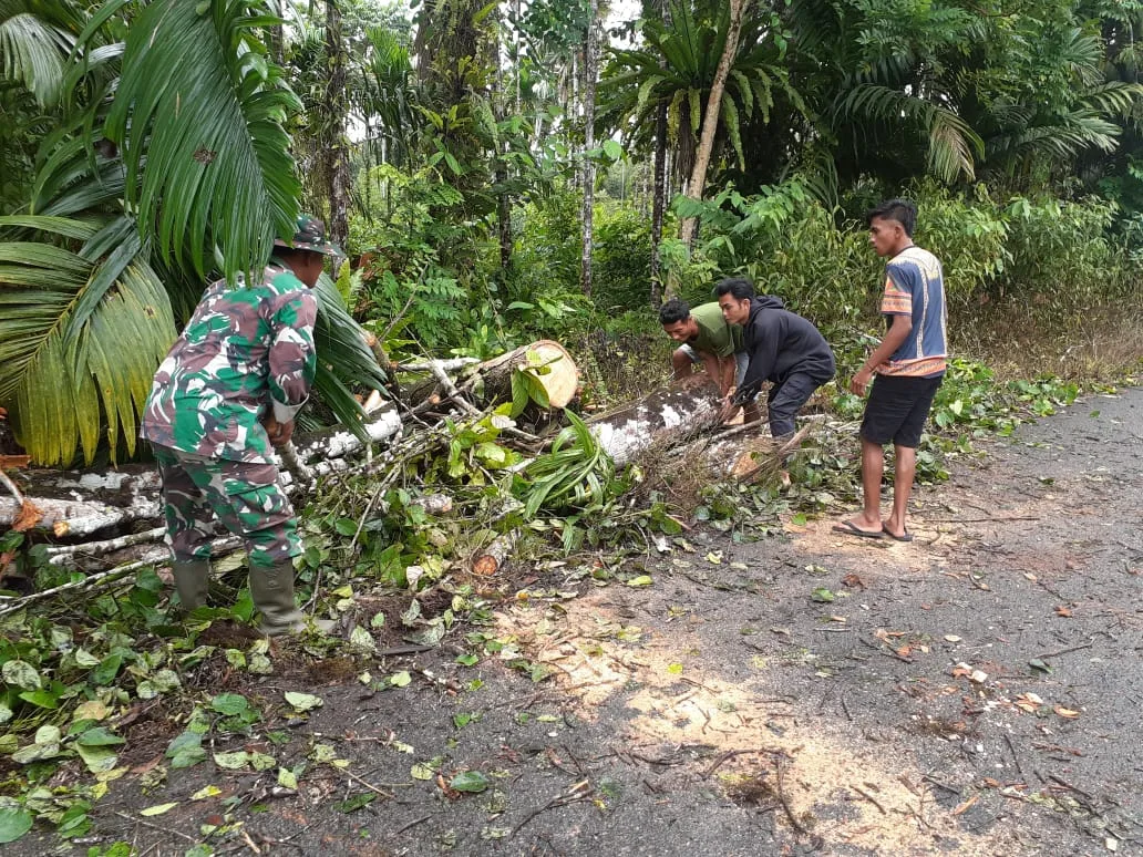 Simeulue – Serda Yatno Babinsa Koramil 06/Teluk Dalam, Kodim 0115/Simeulue, Korem 012/Teuku Umar. Melaksanakan gotong royong dengan warga desa Gunung Putih, Kecamatan Teluk Dalam, Kabupaten Simeulue. Rabu (19/11/2025).