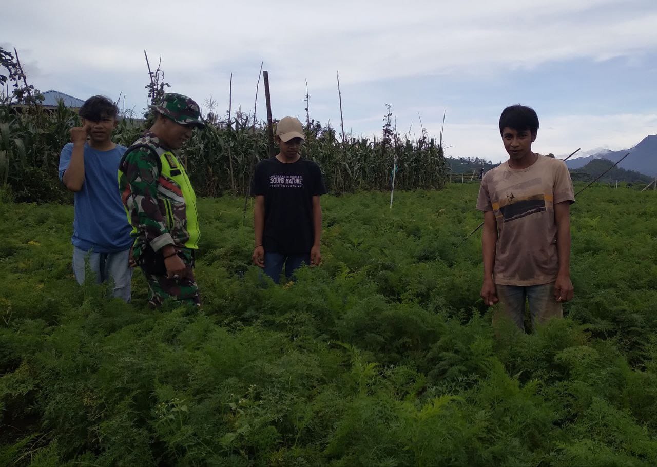 SINJAI – Babinsa Desa Gunung Perak Koramil 1424-02/Sinjai Barat, Serda Mungkar, terus menunjukkan komitmennya dalam mendukung program ketahanan pangan nasional. Kali ini, ia melaksanakan kegiatan pemantauan perkembangan tanaman sayuran jenis wortel di lahan seluas 0,25 hektare milik Bapak Ramli yang berlokasi di Dusun Puncak, Desa Gunung Perak, Kecamatan Sinjai Barat, Kabupaten Sinjai, Rabu (02/07/2025)