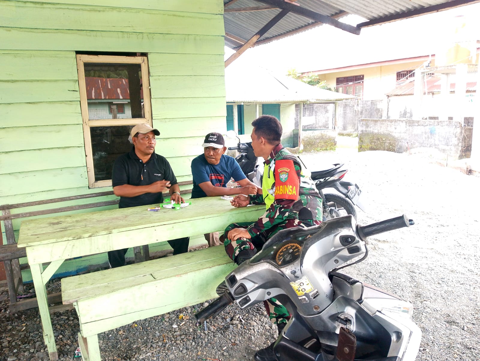 Nagan Raya – Sertu Heppy Eka Babinsa Koramil 01/Kuala melakukan kegiatan jaga keakraban dengan warga binaan di Desa Ujong Sikuneng Kecamatan Kuala. Kegiatan ini bertujuan untuk meningkatkan silaturahmi dan kemanunggalan antara Babinsa dan Sabtu (10/05/2025).
