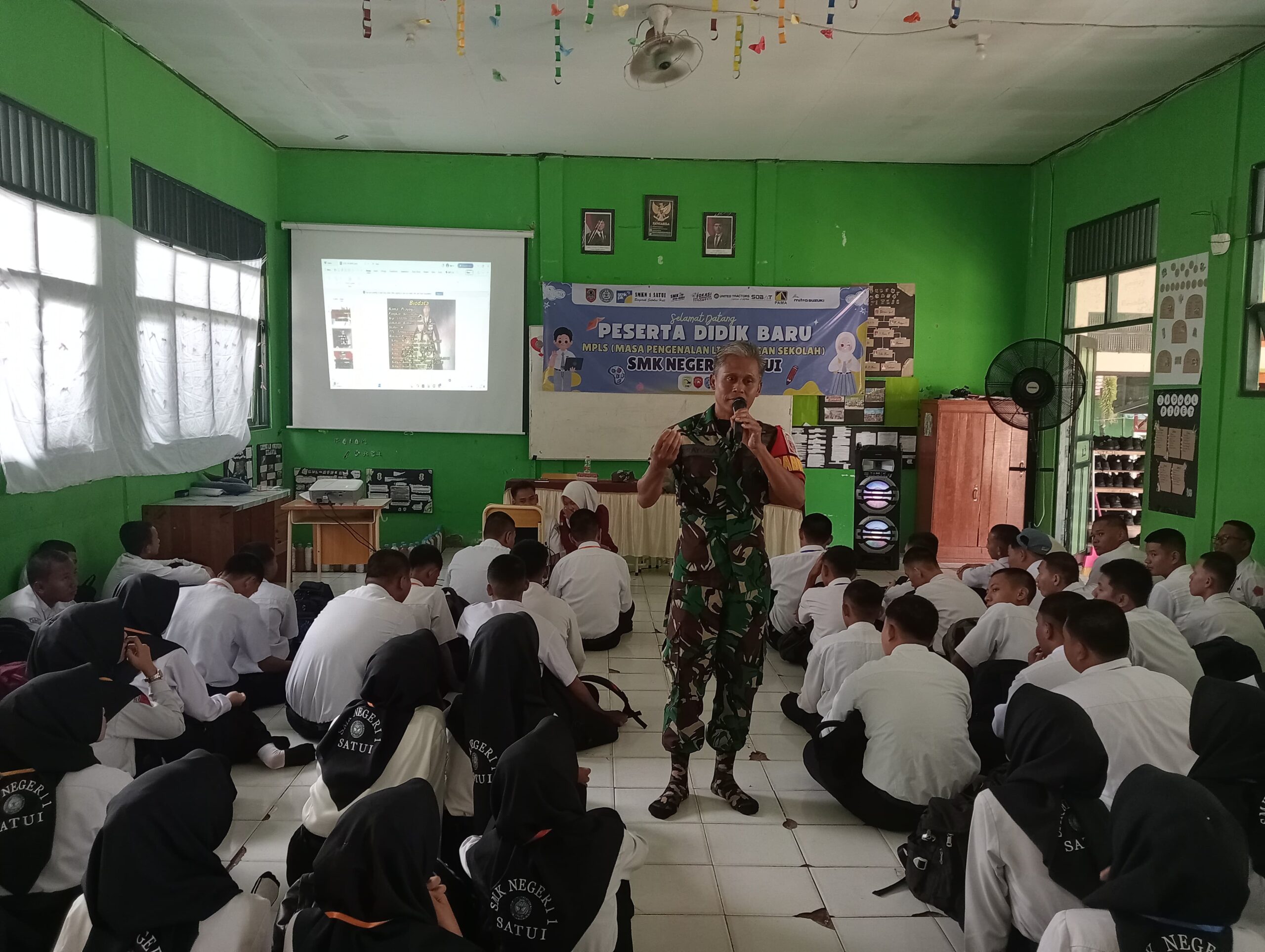 Tanah Bumbu – Babinsa Jajaran Kodim 1022/Tanah Bumbu memberikan materi wawasan kebangsaan (Wasbang) pada saat Masa Pengenalan Lingkungan Sekolah (MPLS), Kamis (17/07/2025).