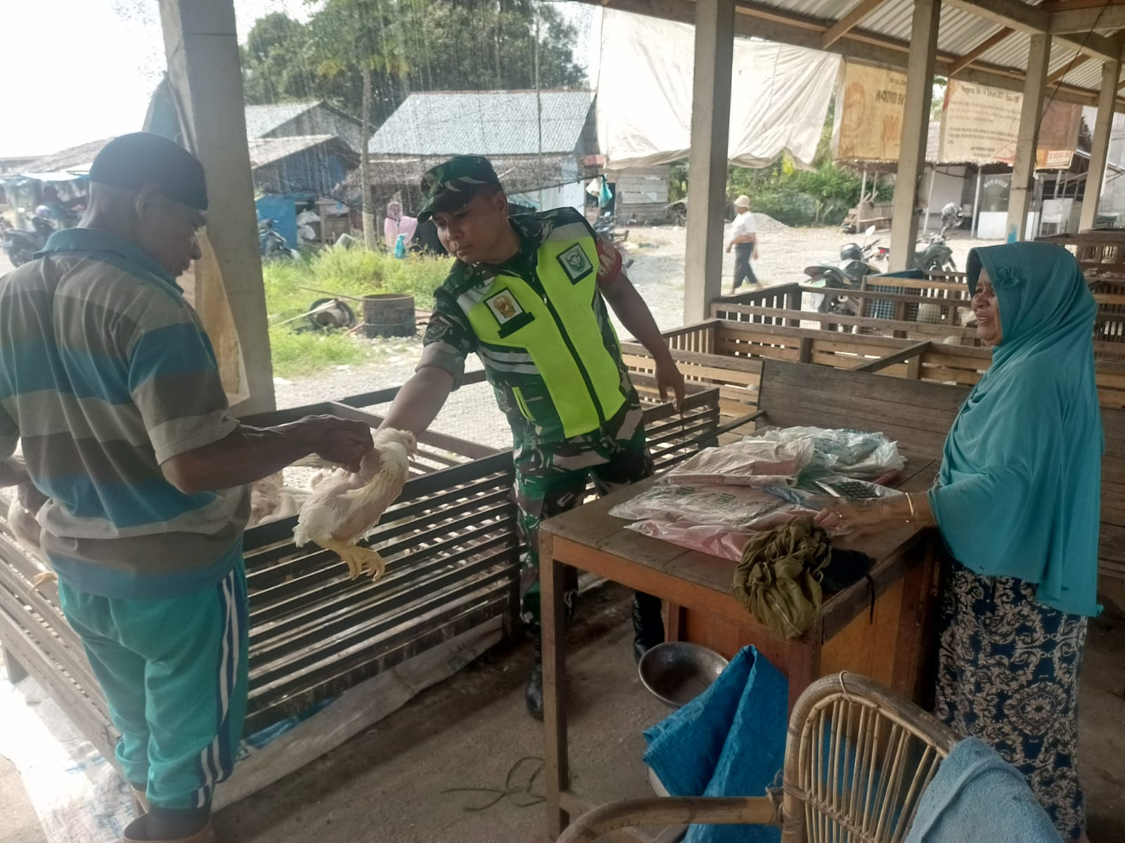 Babinsa Posramil Suka Makmue kodim 0116/ Nara selalu meluangkan waktu guna membangun komunikasi yang baik bersama masyarakat di wilayah binaanya, salah satunya dengan menyambangi pedagang ayam potong tradisional di desa Lueng baroe kecamatan Suka Makmue kabupaten Nagan raya,untuk berinteraksi bersama para pedagang ayam potong juga berikan himbauan agar selalu tetap menjaga kebersihan dan kerapian dagangannya baik pas lagi jualan setelah selesai berjualan, Sabtu ( 28/06/2025).