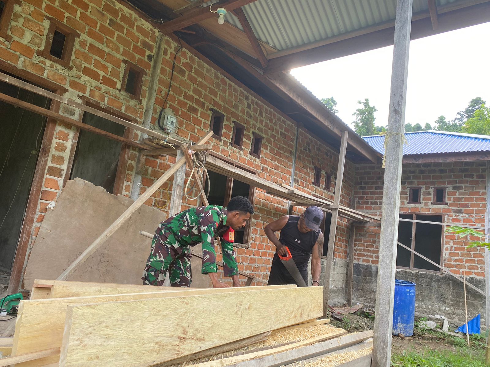 Babinsa Kampung Manyaifun Koramil 1805-01/Waisai Bantu Warga Desa Binaan Membangun Bangunan Rumah