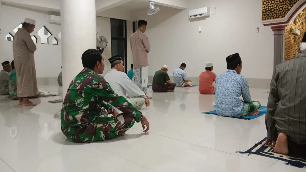 Selain melaksanakan ibadah bersama, Babinsa juga memanfaatkan momen tersebut untuk berkomunikasi langsung dengan warga terkait kondisi keamanan dan ketertiban lingkungan.