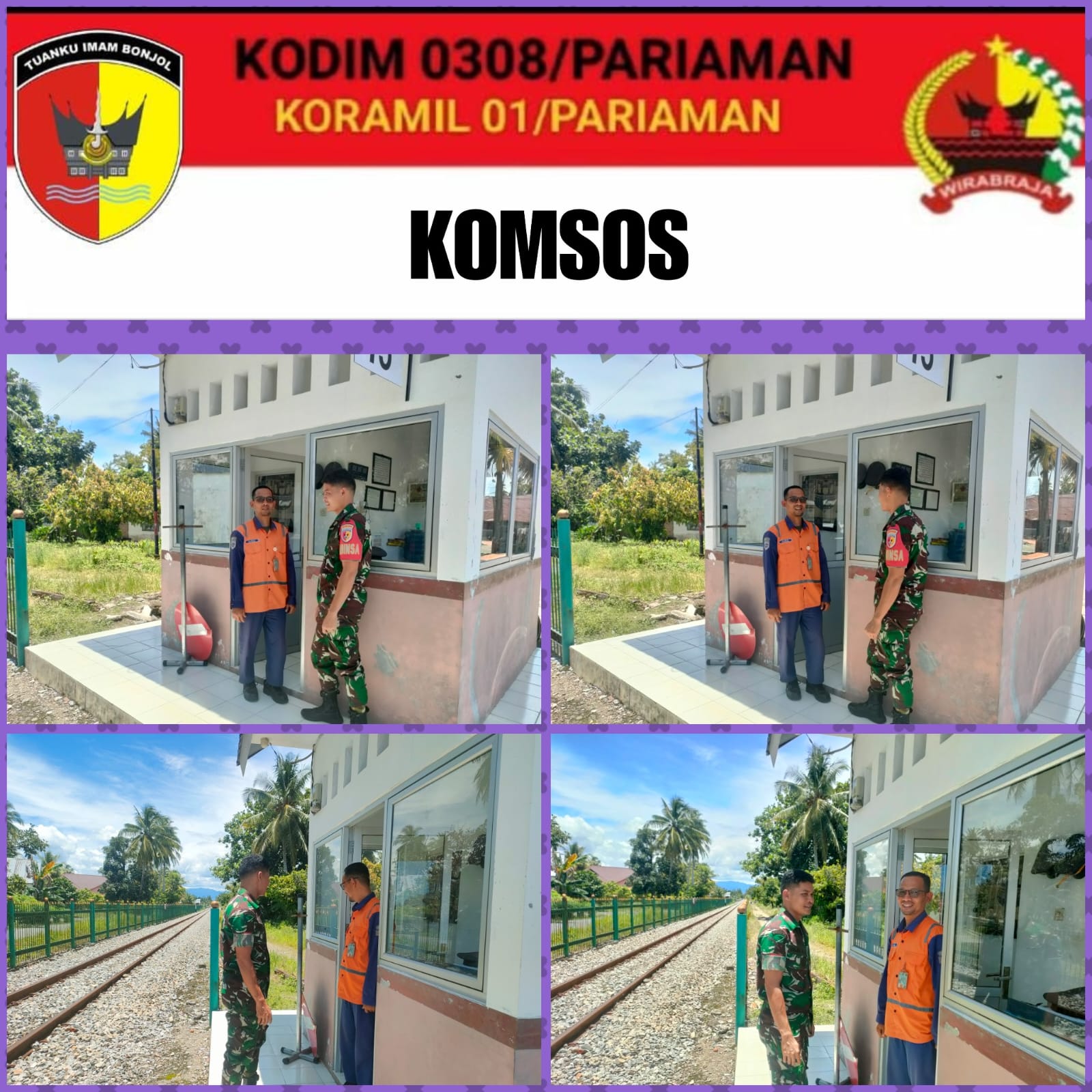 PARIAMAN,- Babinsa Koramil Pratu Bima Tri Saputra melaksanakan kegiatan Komunikasi Sosial (Komsos) dengan salah satu warga binaan, yaitu Bapak Fajrial selaku penjaga pintu perlintasan kereta api di Kelurahan Jalan Kereta Api, Kecamatan Pariaman Tengah, Kota Pariaman, Minggu (21/09/2025).