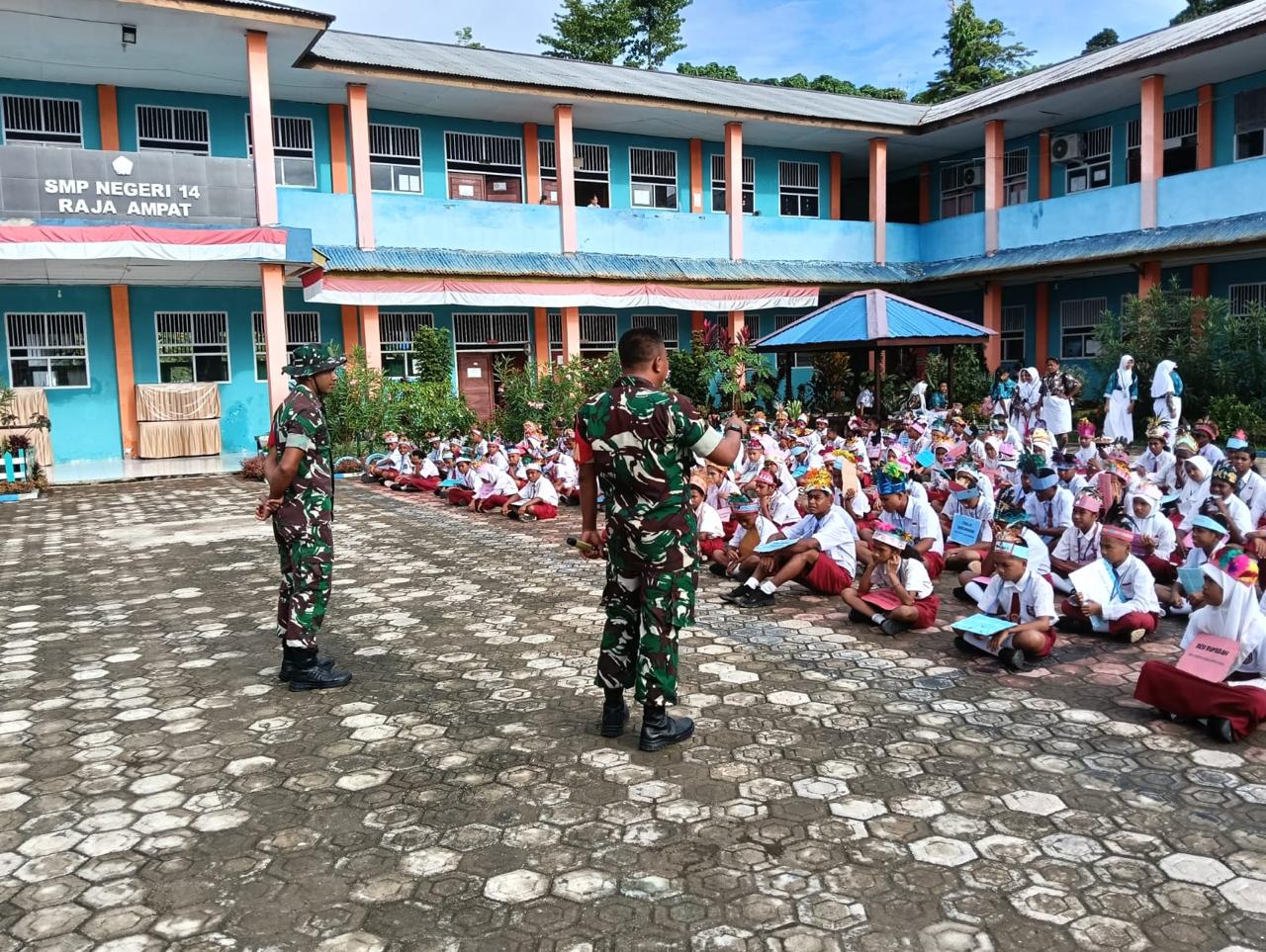 Raja Ampat,PBD-Dalam rangka menyambut tahun ajaran baru, Bintara Pembina Desa (Babinsa) turut ambil bagian dalam kegiatan Masa Pengenalan Lingkungan Sekolah (MPLS) bagi siswa-siswi baru di SMP- negri 14 Raja Ampat Distrik Waisai kota kab.Raja Ampat ,