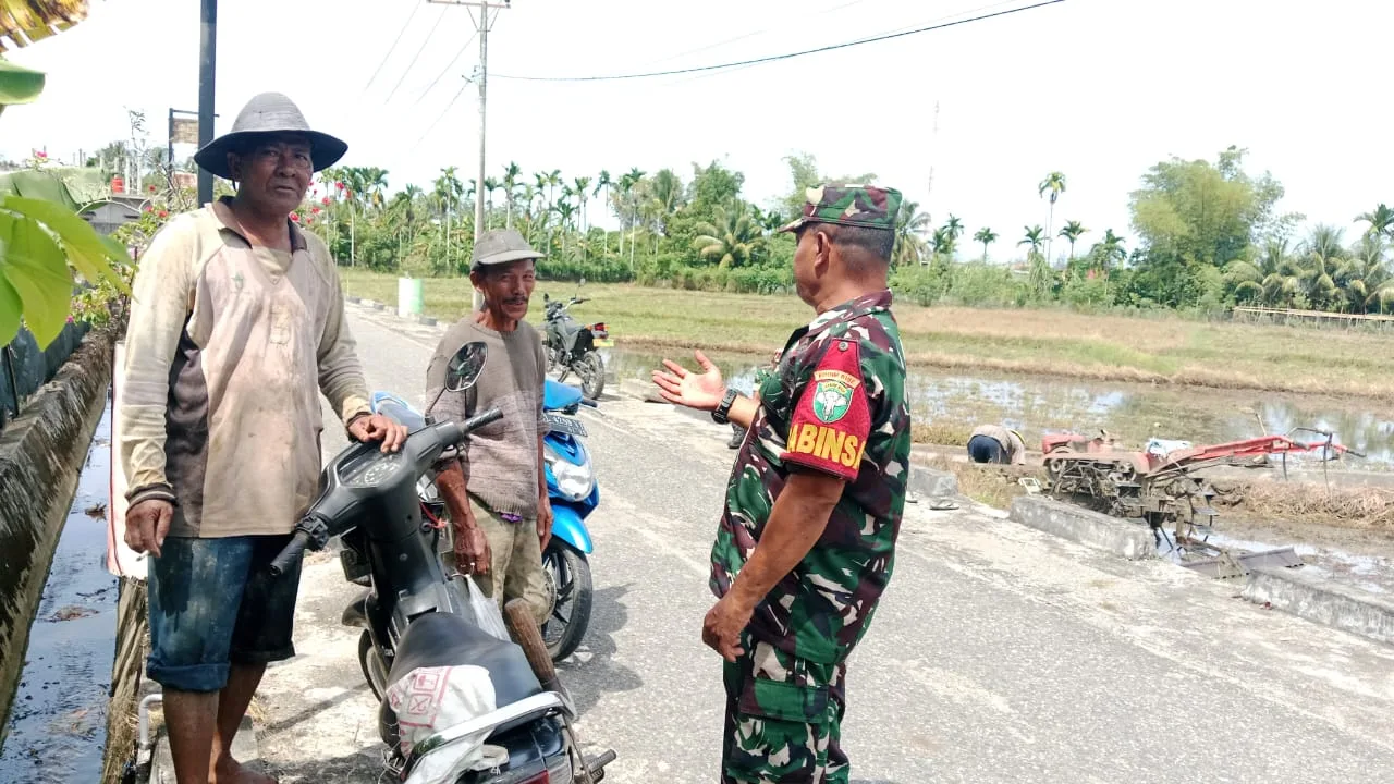 Aceh Selatan – Dalam rangka menjaga keamanan dan ketertiban serta mempererat hubungan dengan warga di wilayah binaan, Babinsa Koramil 02/Labuhanhaji Kodim 0107/Aceh Selatan Serka Syarif melaksanakan kegiatan pemantauan wilayah sekaligus komunikasi sosial (komsos) dengan para petani di desa Bakau Hulu Kecamatan Labuhanhaji, Kamis (9/10/2025).