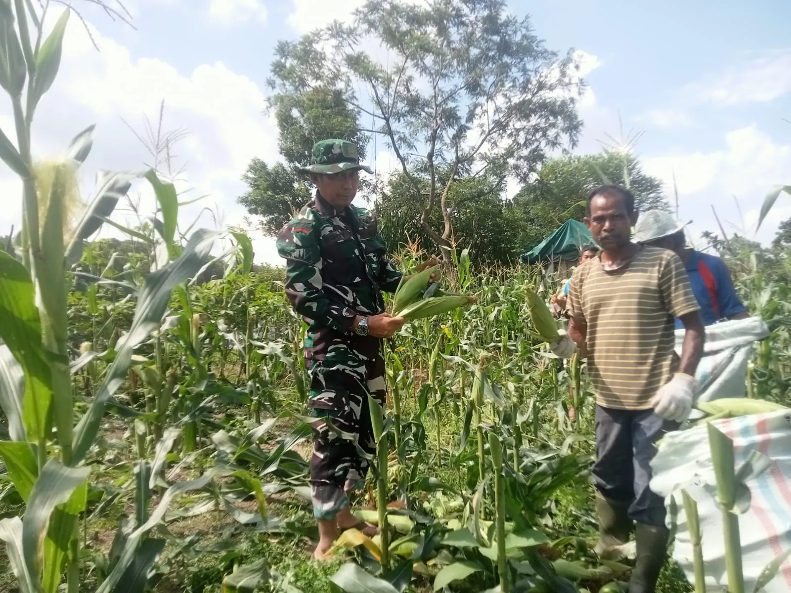 Dengan penuh semangat Babinsa bersama petani melihat hasil Panen jagung manis warga yang sangat bagus dan sesuai dengan yang diharapkan dan Babinsa juga memberikan memotivasi mereka agar tetap bersemangat dan produktif dalam bertani