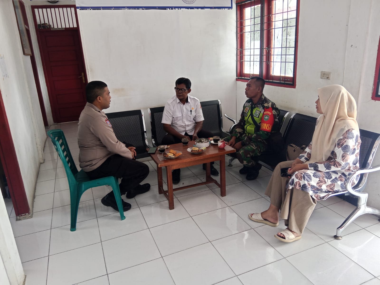 Dalam kesempatan tersebut, Babinsa berdialog langsung dengan aparatur desa setempat, salah satunya membahas berbagai hal terkait keamanan lingkungan dan peran aktif generasi muda dalam menjaga ketertiban desa.