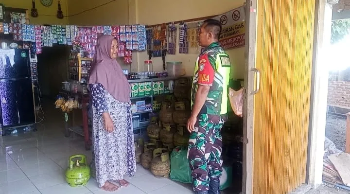 Nagan Raya, Sertu Tri Roma dona Babinsa Koramil 02/Seunagan Kodim 0116/Nara Melaksanakan Komsos (Komunikasi sosial) dengan pemilik pangkalan gas LPG tentang permasalahan mengenai gas di Desa Kuta Sayeh Kecamatan Seunagan, Kabupaten Nagan Raya,Selasa (23/12/2025)