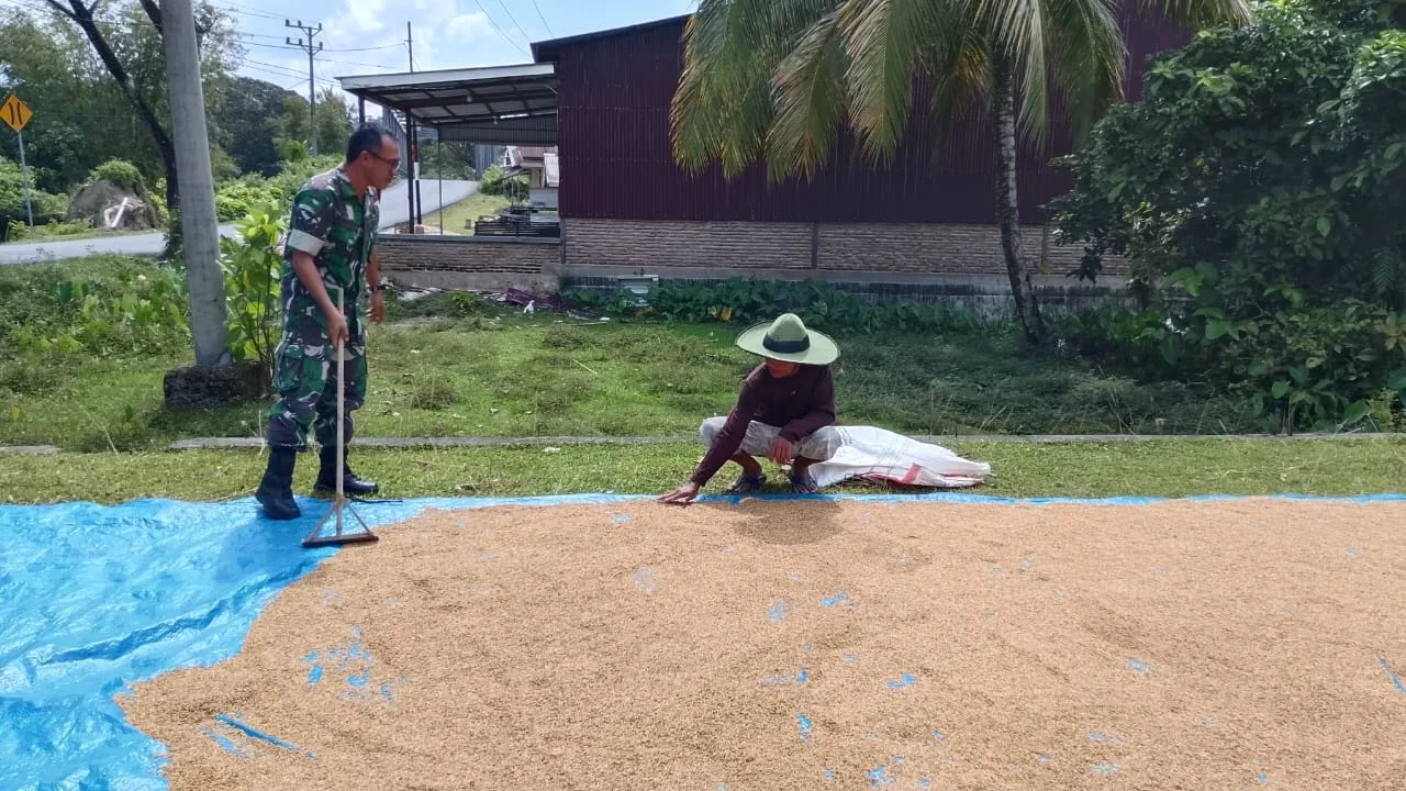 Sertu Mendrova menuturkan kegiatan ini merupakan bentuk kemanunggalan TNI bersama rakyat demi mewujudkan swasembada pangan nasional Babinsa turun ke lapangan membantu petani untuk mengangkut hasil panen padi untuk di jemur.