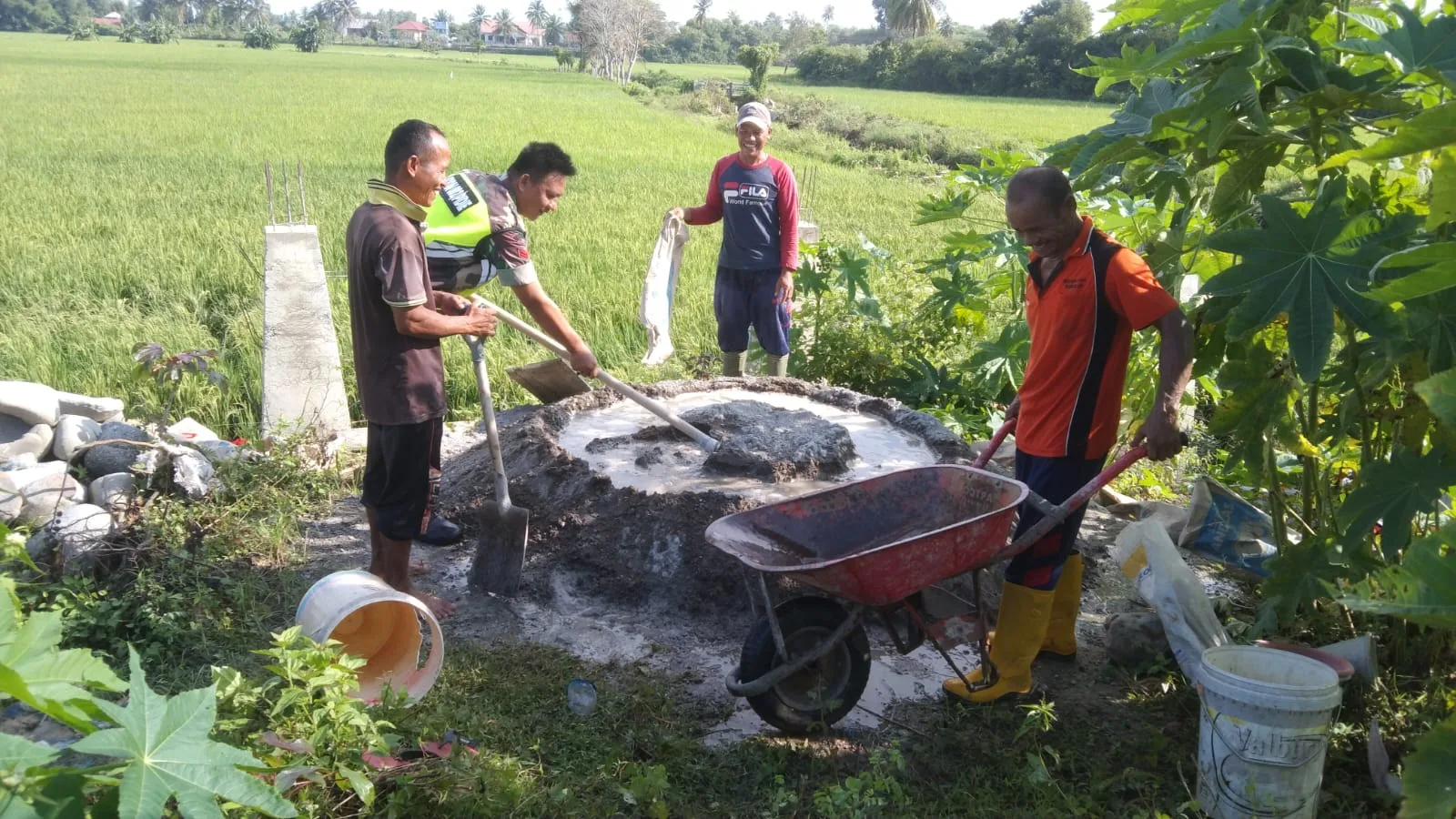 Tanpa ragu, Koptu Ferli Yansah ikut mengangkat material dan membantu pekerjaan teknis di lapangan, menunjukkan kepedulian nyata terhadap kesulitan warga.