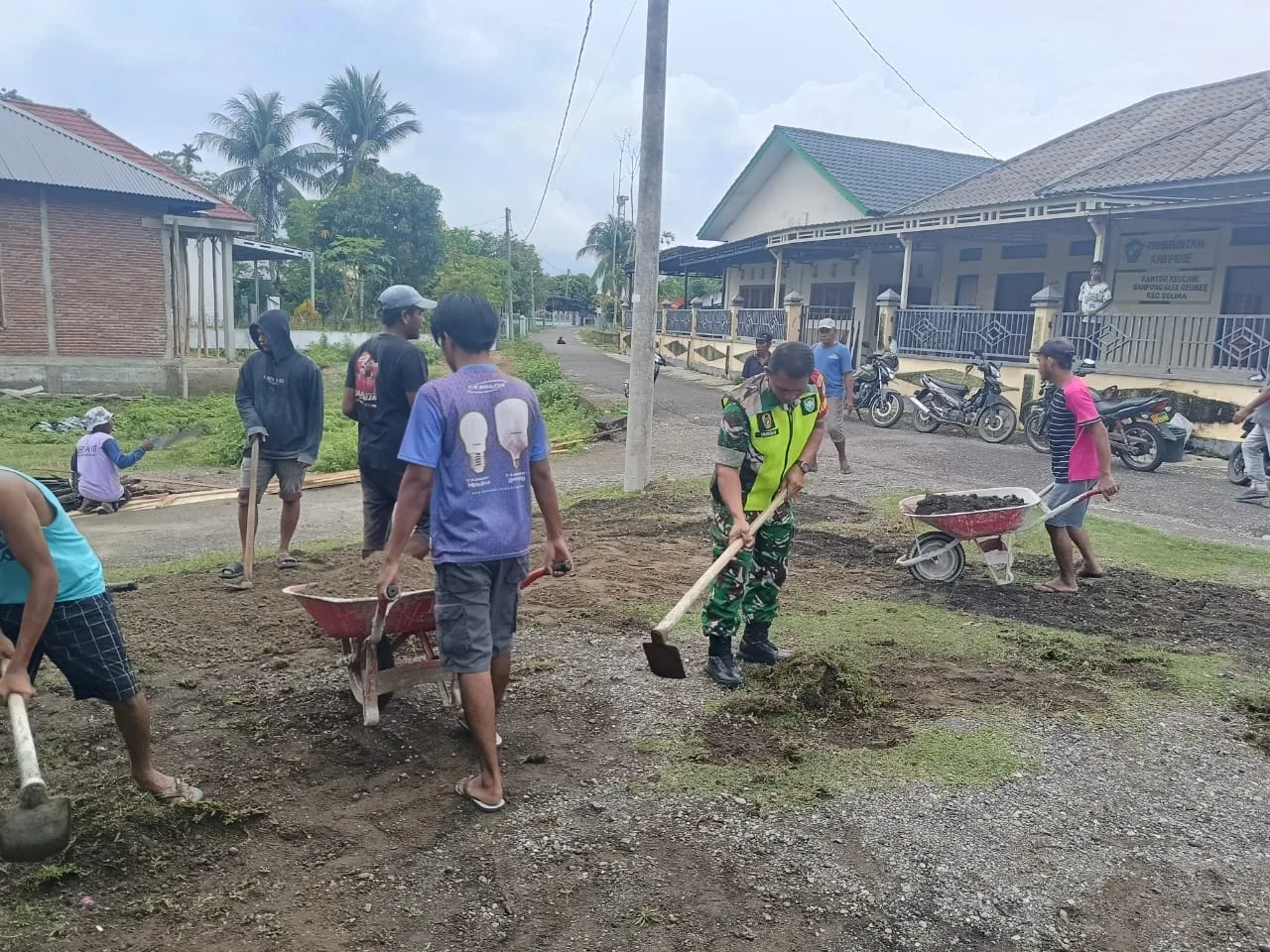 Pidie — Semangat kebersamaan antara aparat teritorial dan masyarakat kembali terlihat di Desa Glee Reubee, Kecamatan Delima, Kabupaten Pidie. Babinsa Koramil 03/Delima, Sertu Murdani, bersama warga setempat melaksanakan kegiatan karya bakti membersihkan halaman balai gampong, Kamis (12/02/2026).