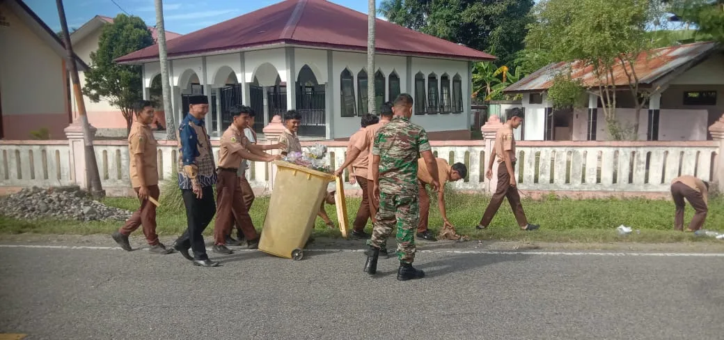 Babinsa Koramil 03/Meukek Ajak Siswa SMA Negeri 1 Meukek Gotong Royong Jaga Kebersihan Lingkungan Sekolah