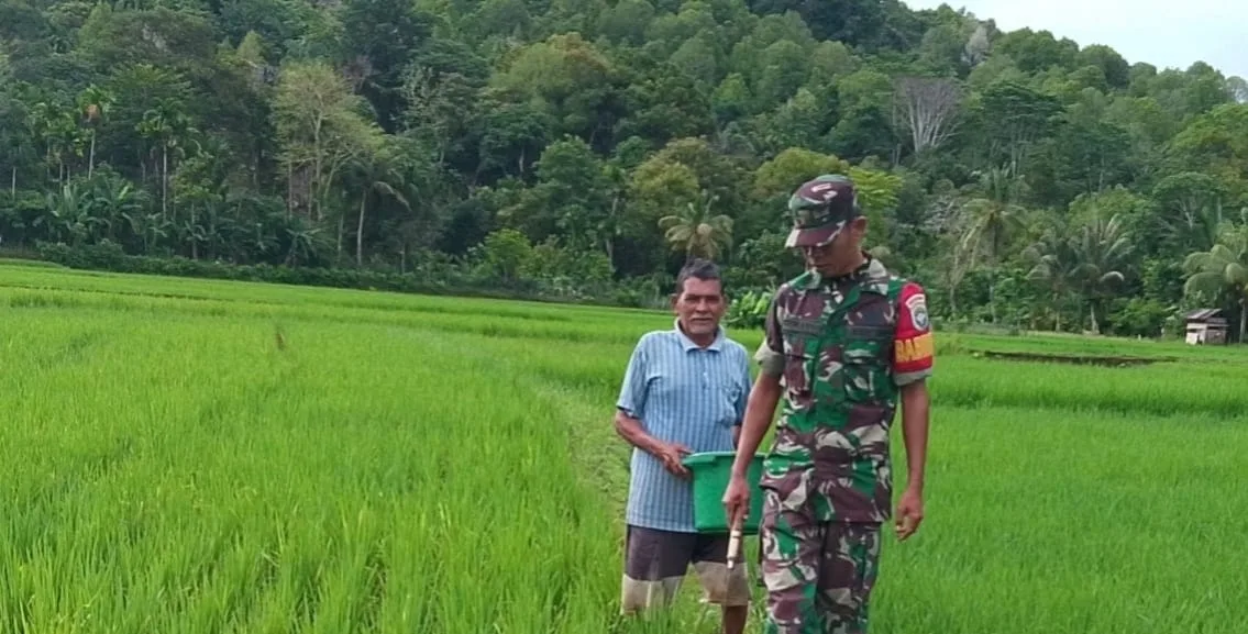 Babinsa Koramil 03/Meukek Dampingi Petani Desa Ie Buboh dalam Upaya Tingkatkan Ketahanan Pangan