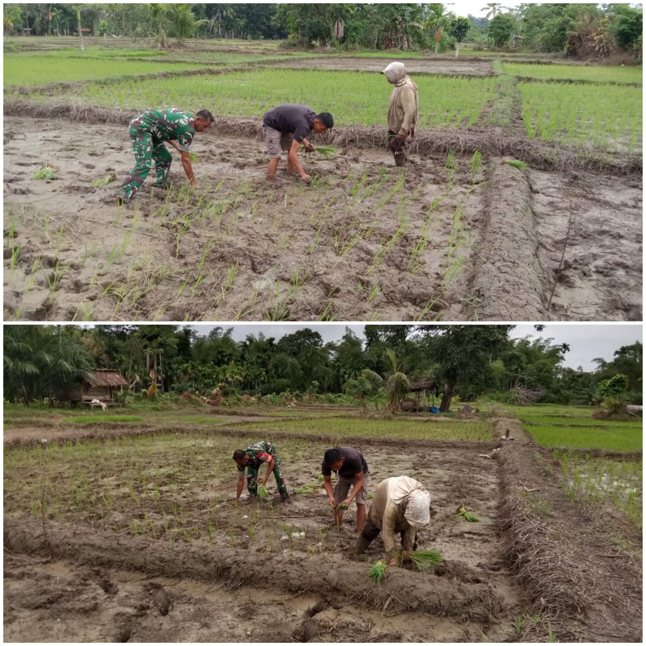 “Ini sudah merupakan tugas kami sebagai aparatur kewilayahan membantu para petani dalam hal pertanian, seperti kegiatan tanam padi yang sedang saya kerjakan merupakan wujud kemanunggalan TNI- Rakyat,” ujarnya