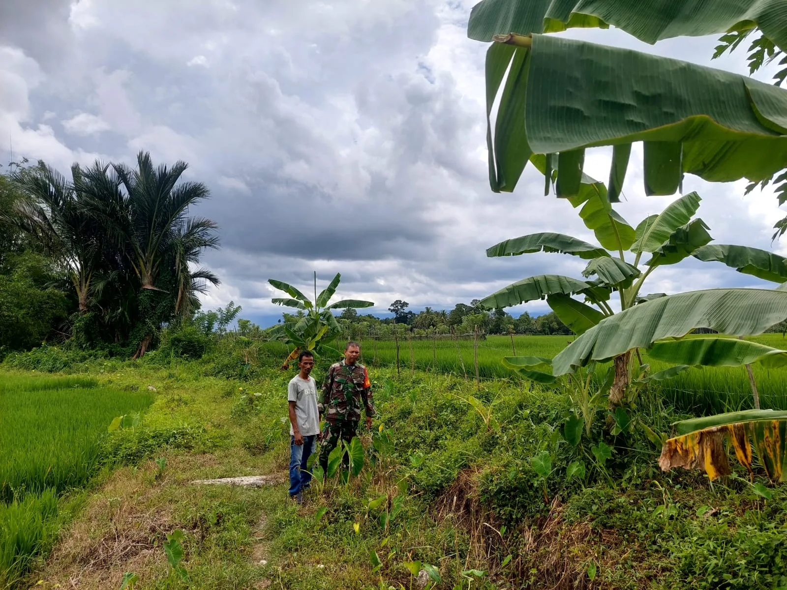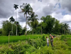 Sertu Heriyanto Babinsa Koramil 03/Senagan Timur melakukan pengecekan saluran aliran air irigasi Persawahan yang tersumbat di Desa Cot Gud Kecamatan Senagan Timur Kabupaten Nagan Raya tindakan ini bertujuan untuk memastikan kelancaran aliran air bagi pertanian dan mencegah potensi banjir di desa binaan yang dapat mengganggu aktivitas pertanian masyarakat setempat.