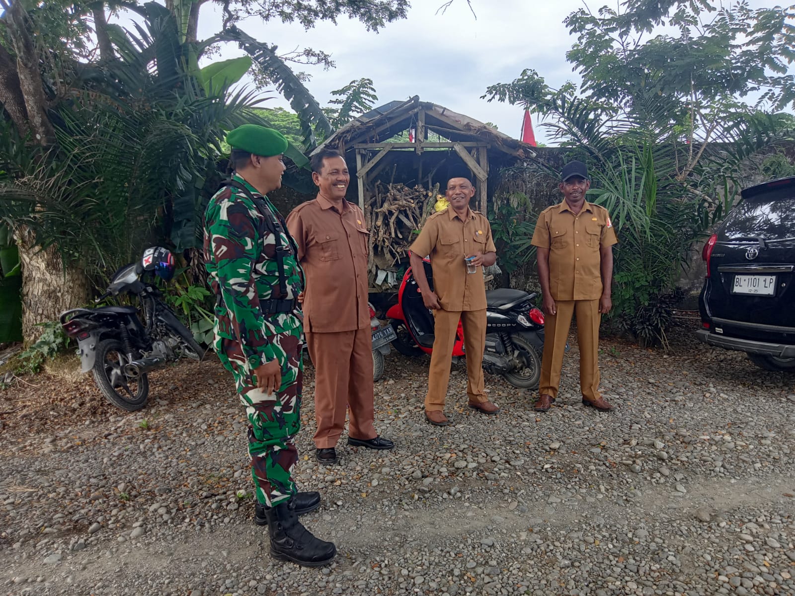 Nagan Raya – Untuk meningkatkan kerjasama yang baik dengan aparatur desa di wilayah binaan Serda Sugiri Babinsa Koramil 03/Senagan Timur Kodim 0116/Nagan Raya melaksanakan Komsos bersama Perangkat desa di Desa Lhok Masjid, Kecamatan Senagan Timur, Senin (18/08/2025).