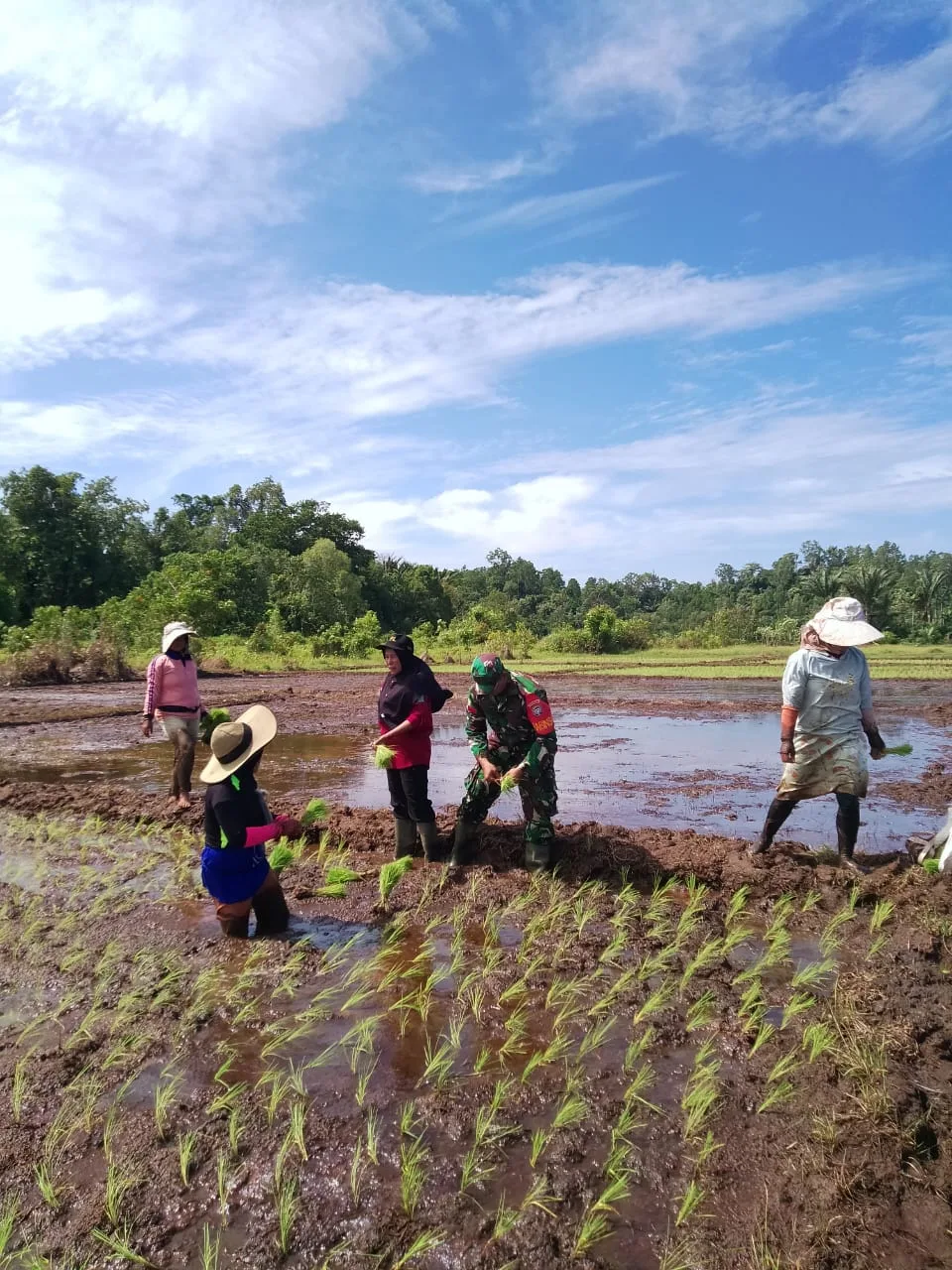Sebagai bagian dari pendampingan ketahanan pangan, Babinsa secara konsisten membantu para petani di wilayah binaannya, mulai dari persiapan hingga pemeliharaan tanaman padi. Pendampingan ini bertujuan untuk mempercepat proses penanaman padi dan meningkatkan hasil pertanian.