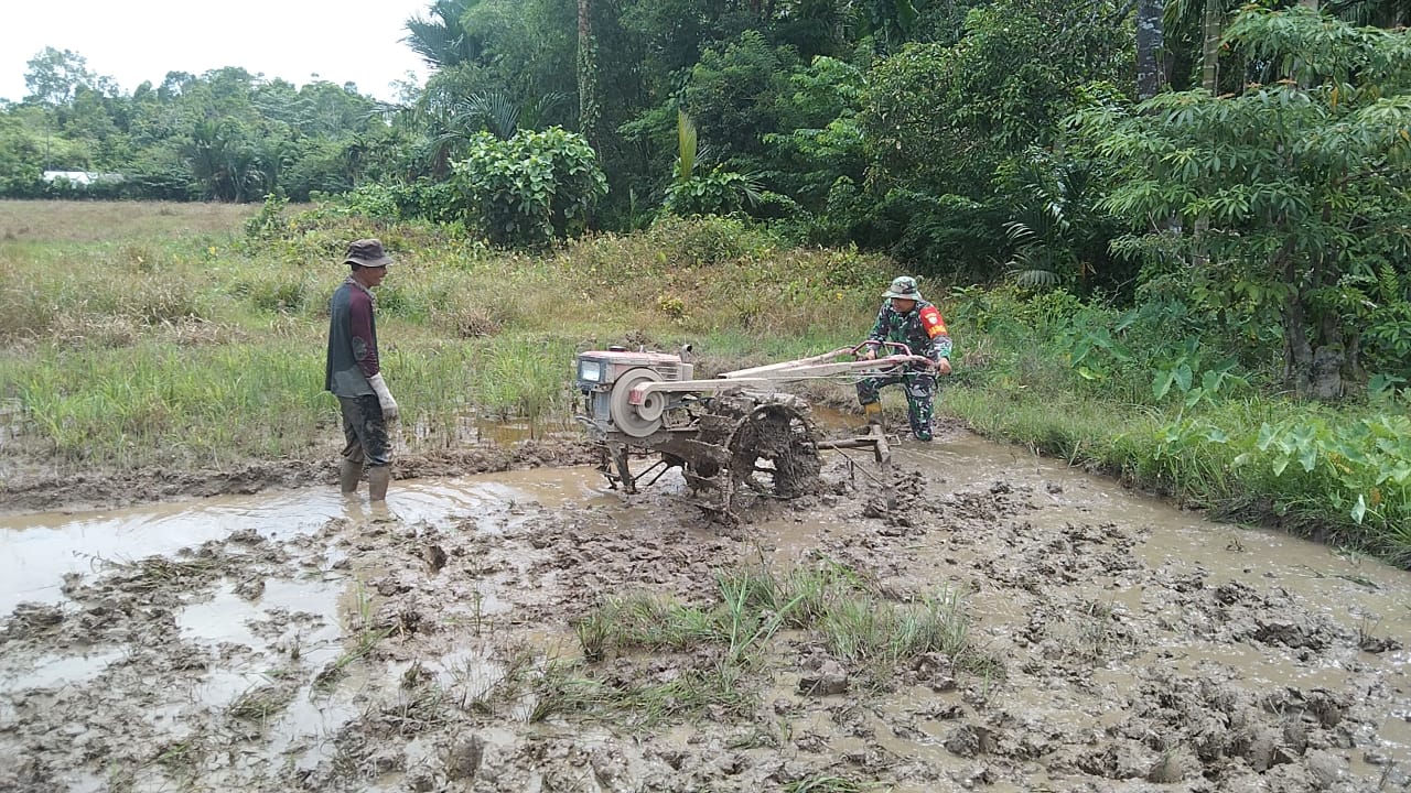 Babinsa Koramil 03/Teupah Selatan Bantu Warga Bajak Sawah