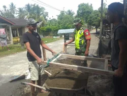 Nagan Raya – Babinsa Koramil 04/Beutong,Kodim 0116/Nara.koptu Elpa Mardian Melaksanakan karya bhakti bantu meringankan pekerjaan warga dalam rangka pembagunan Rumah yang bertempat di Desa Gunung Nagan Kecamatan Beutong Kabupaten Nagan Raya , Senin, (24/11/2025).