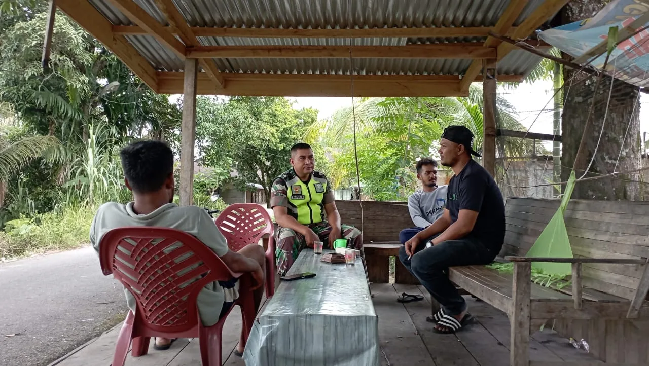 Nagan Raya; Babinsa Koramil 04/ Beutong , Kodim 0116/Nagan Raya Serda Saiful Bahri melaksanakan Komunikasi sosial dengan tokoh masyarakat di wilayah bina nya di Desa Bumi sari.kecamatan Beutong Kabupaten Nagan Raya Sabtu ( 11-04-2026).