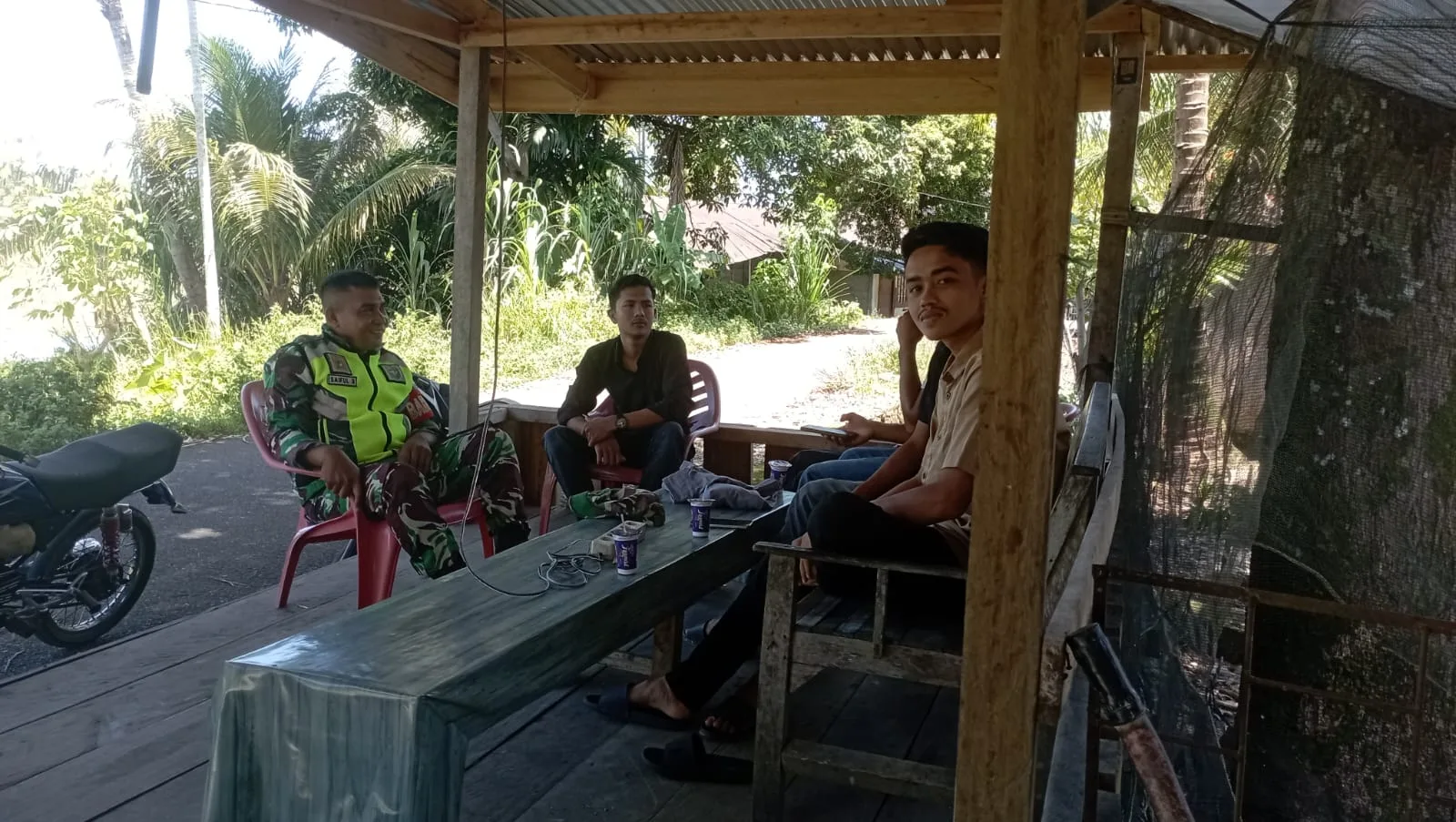 Dalam kunjungannya kali ini,Babinsa memberikan wejangan serta nasehat kepada para pemuda yang ada di desa binaannya.Serda Saiful Bahri berpesan kepada kalangan pemuda di Desa Binaan agar senantiasa meningkatkan ketaqwaan serta keimanan kepada Allah SWT guna disaat melakukan kegiatan apapun selalu diberikan perlindungan dan keselamatan.