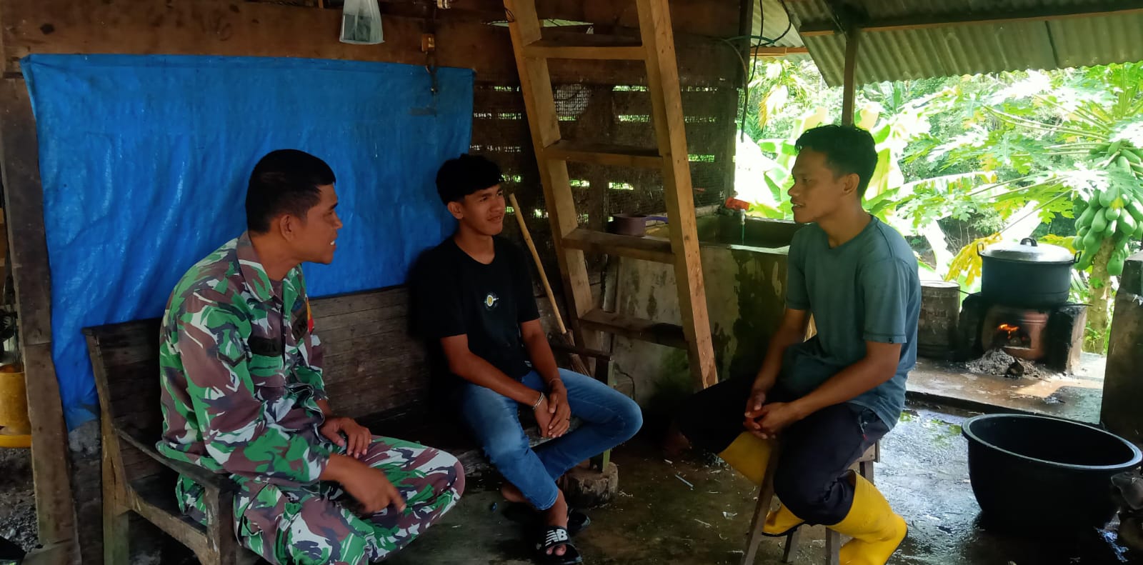 ACEH SELATAN – Babinsa Koramil 04/Sawang Kodim 0107/Aceh Selatan Serda Ali Aman melaksanakan komunikasi sosial (Komsos) dengan pedagang ayam yang ada di wilatah desa binaannya yakni di Desa Ujung Padang Kecamatan Sawang Sabtu (6/9/2025).