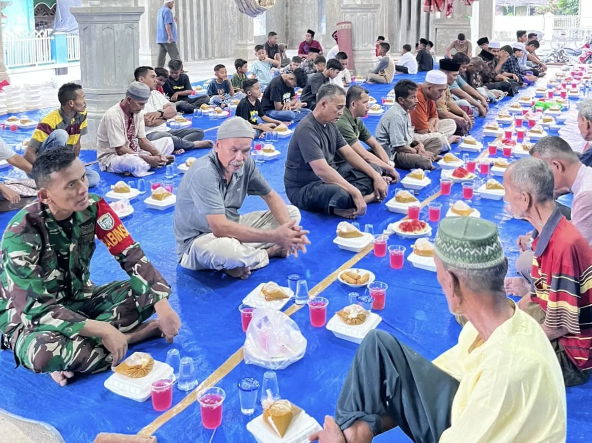 Dalam suasana yang hangat dan penuh keakraban, kegiatan buka puasa bersama tidak hanya menjadi ajang berbagi hidangan, tetapi juga dimanfaatkan untuk berdialog ringan antara Babinsa dan masyarakat.