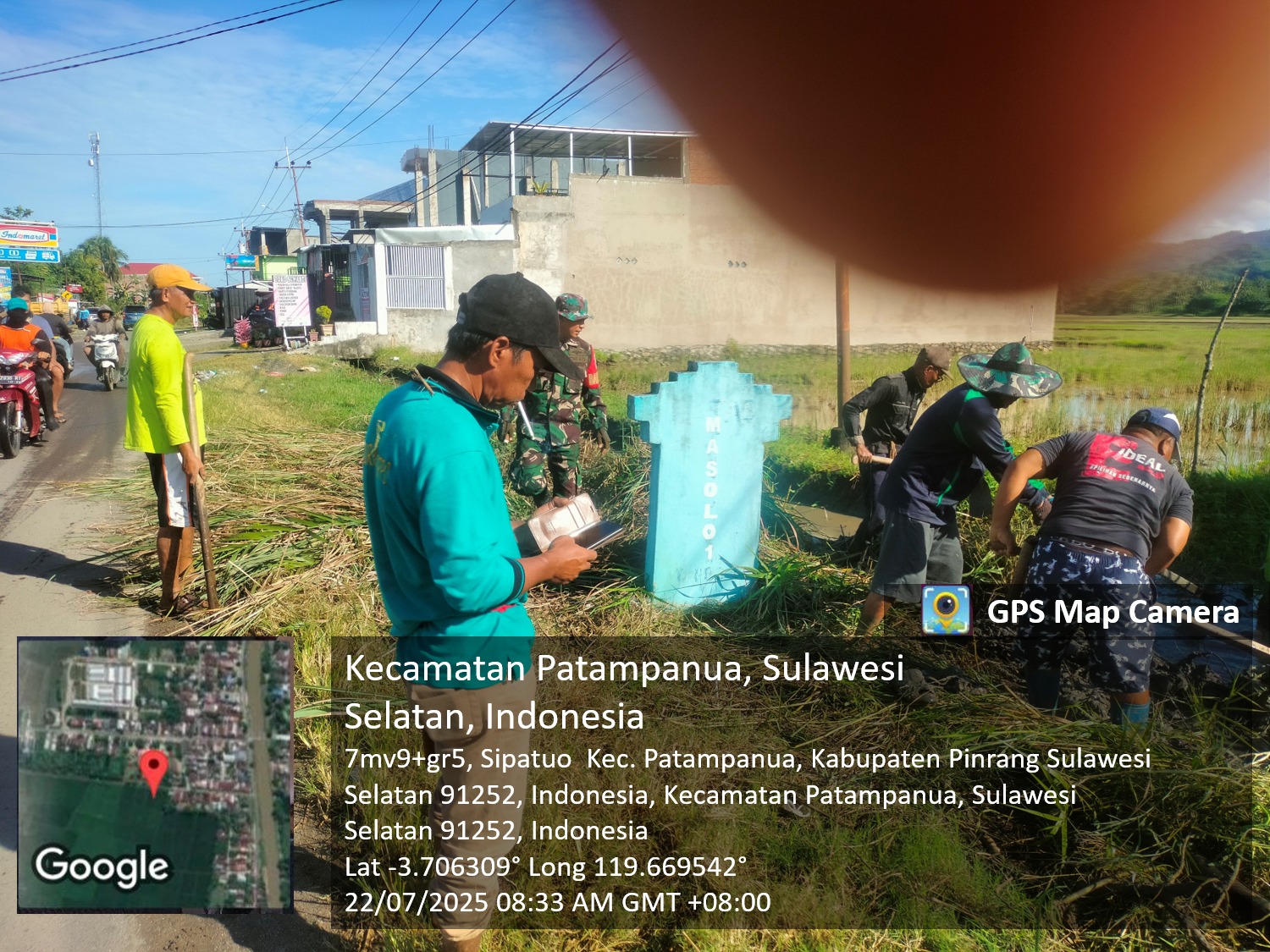 Pinrang_ Peduli kebersihan Lingkungan, Babinsa Koramil-05/Patampanua Kodim 1404/Pinrang Serda Jusman melaksanakan kerja bakti membersihkan saluran air bersama warga di Kelurahan Teppo Kecamatan Patampanua Kabupaten Pinrang, Selasa (22/07/2025).