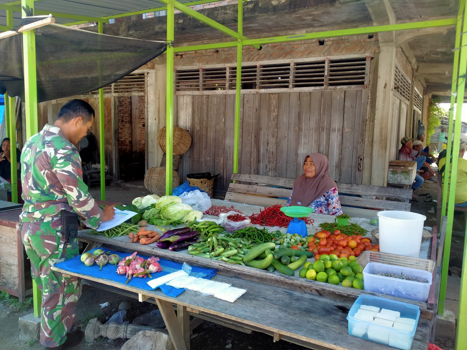 Kegiatan ini dilakukan sebagai langkah antisipasi untuk memastikan ketersediaan bahan pokok tetap aman dan harga tetap stabil di wilayah binaan. Dalam pantauannya, Babinsa Koptu Hermansyah berdialog langsung dengan para pedagang dan pembeli terkait perkembangan harga sembako, seperti beras, minyak goreng, gula, dan kebutuhan penting lainnya.