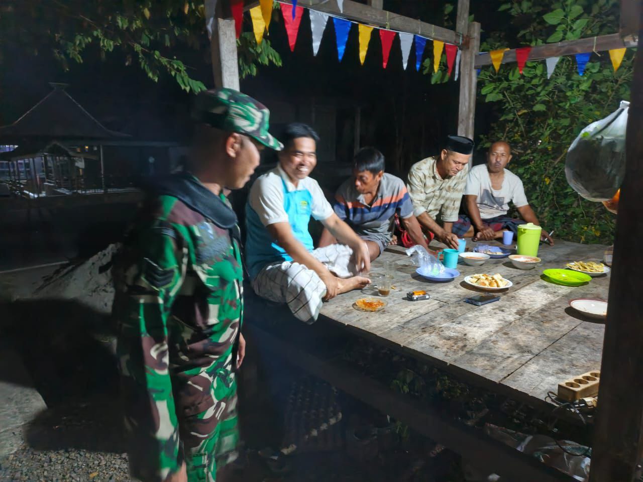 “Patroli malam dan komsos ini bertujuan untuk memberikan rasa aman kepada masyarakat serta mempererat hubungan silaturahmi antara TNI dan warga binaan,” ujar Babinsa Serka Salahuddin.