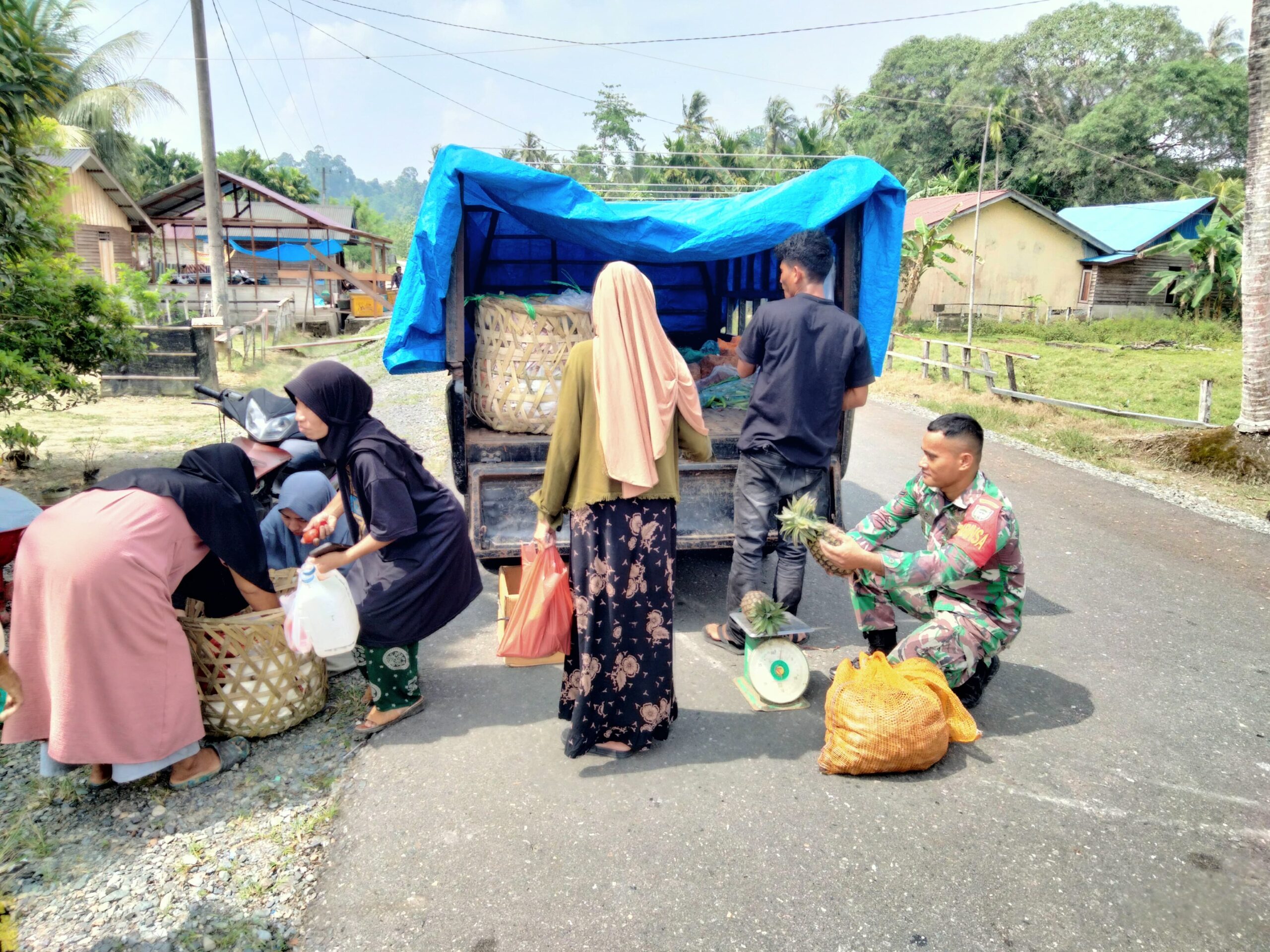 Babinsa Koramil 08/Alafan Sertu M. Angga kausar melaksanakan kegiatan komsos dengan dengan pedagang sayuran keliling kampung dalam hal ini Babinsa menekankan perlunya dagangan yang berkualitas jangan ada yang merugikan masyarakat dengan adanya produk yang kadaluarsa dan busuk di Desa Serafon, Kecamatan Alafan, Kabupaten Simeulue. Kamis (17/07/2025).
