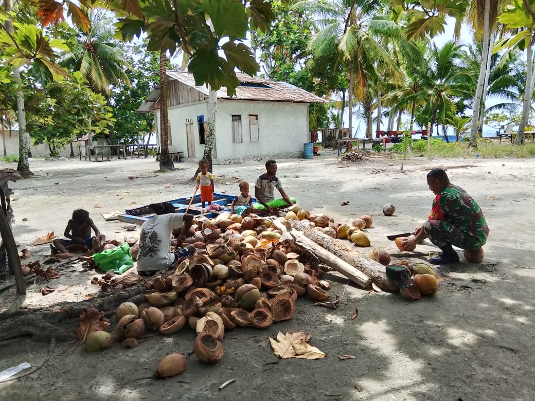 Babinsa Koramil 08/Ayau Bantu Warga Olah Kelapa Menjadi Kopra